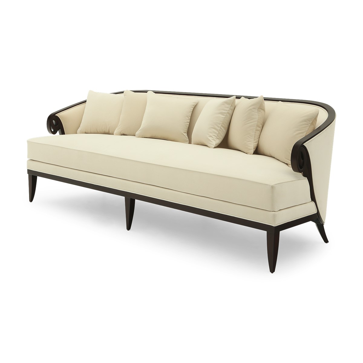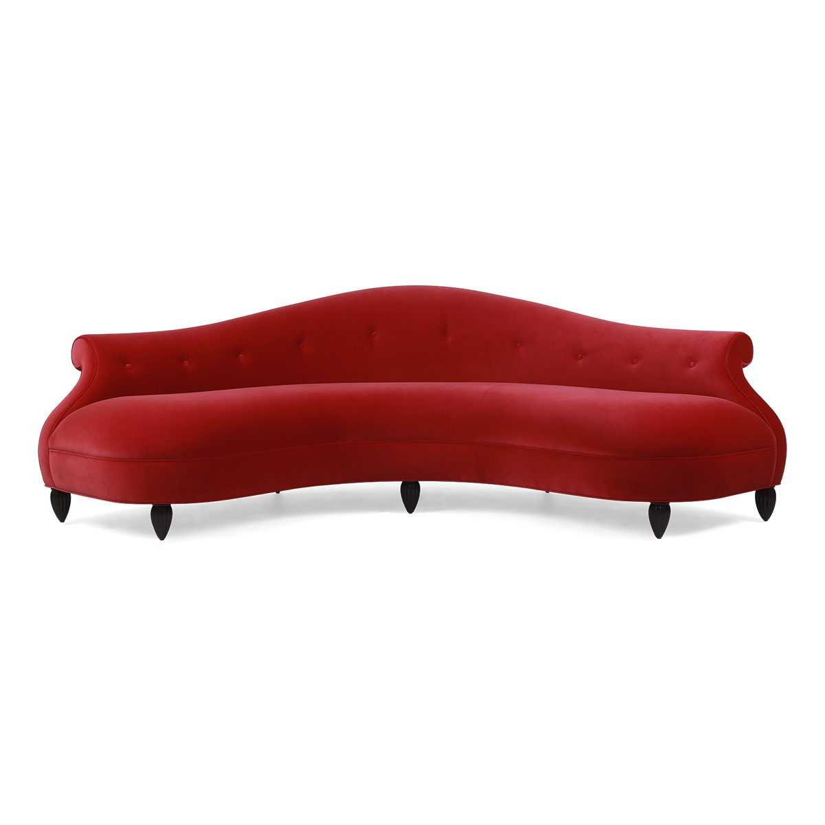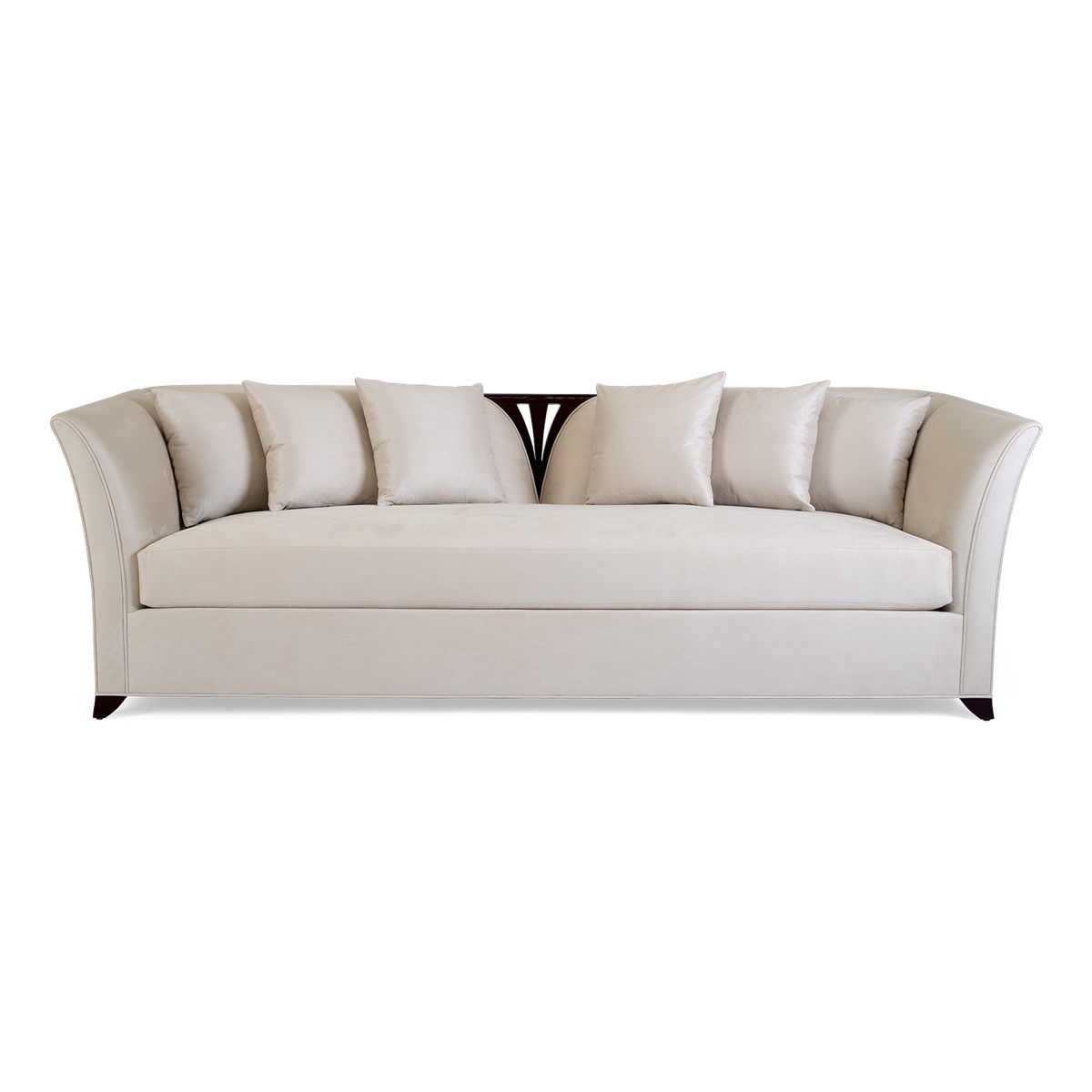 A shelter dining sofa featuring Christopher’s signature hand-carved camellia flowers at the center of the high back. Add in the sumptuous buttoned upholstery and curved wings and this is a truly spectacular piece.