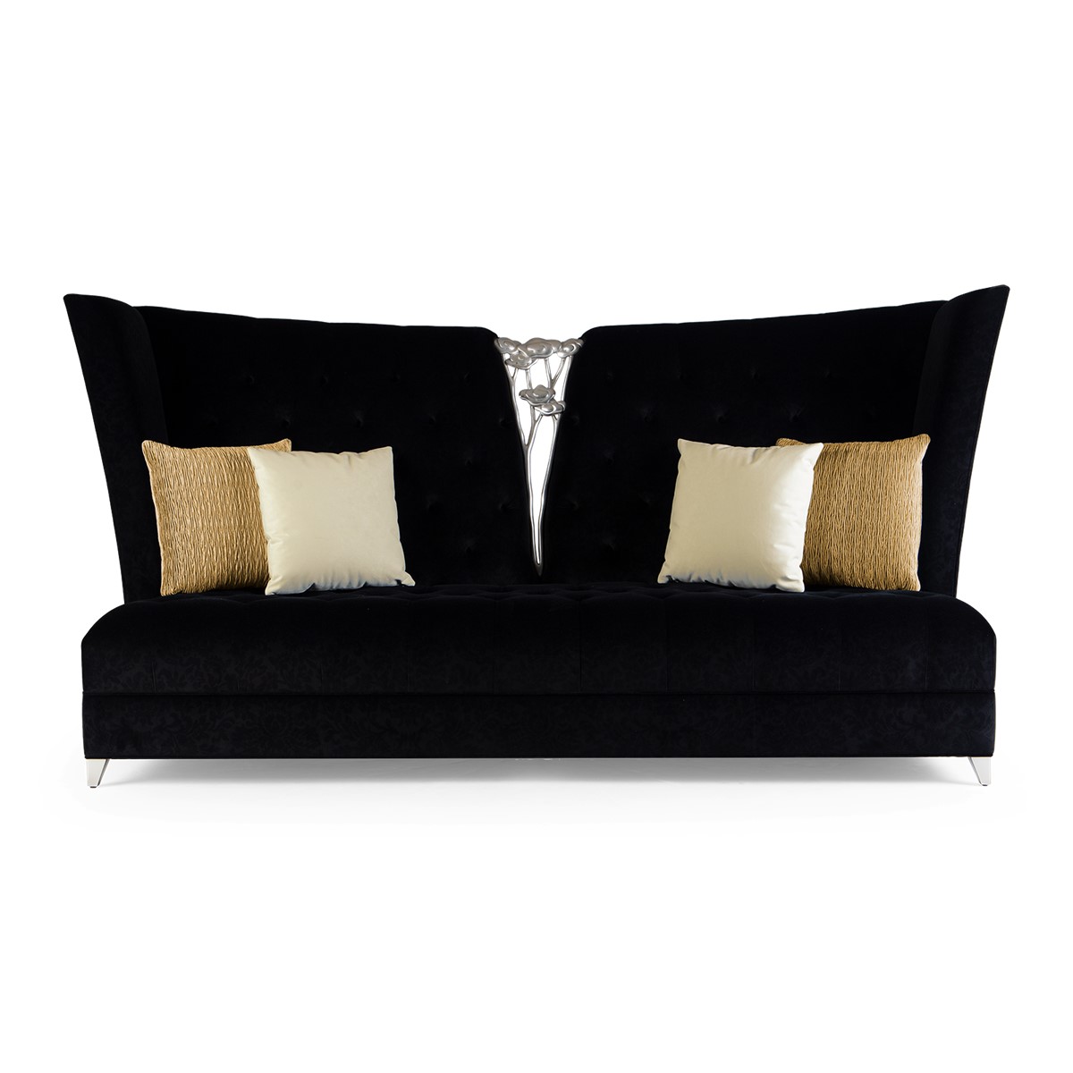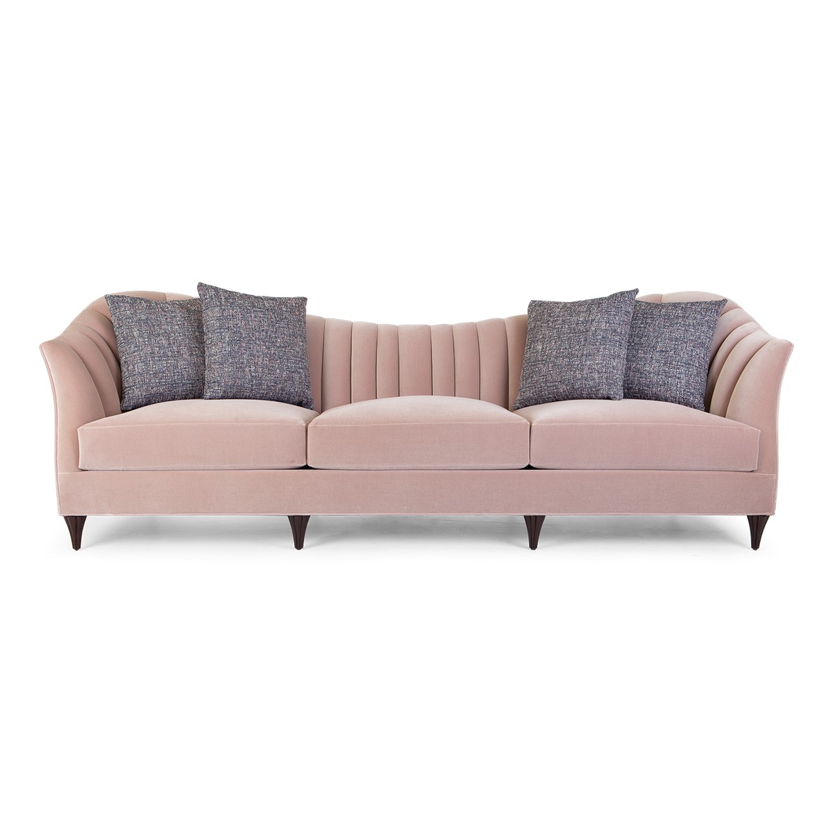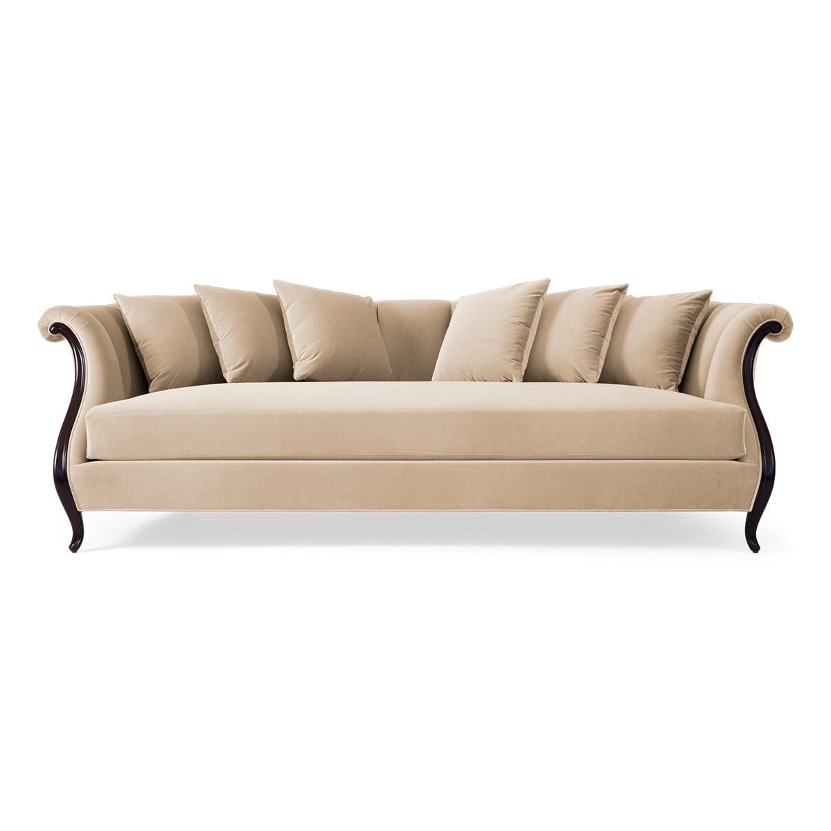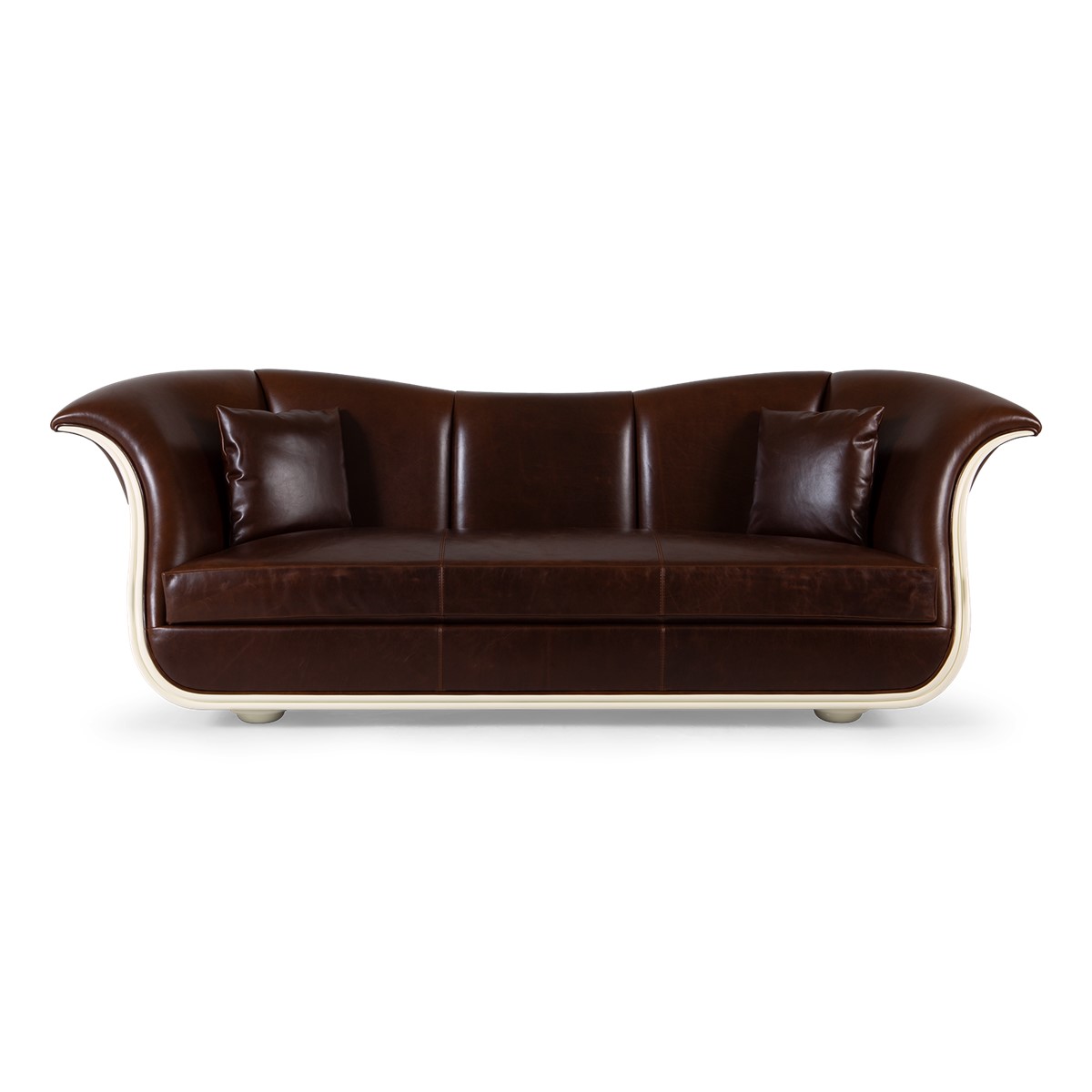 A shelter dining sofa featuring Christopher’s signature hand-carved camellia flowers at the center of the high back. Add in the sumptuous buttoned upholstery and curved wings and this is a truly spectacular piece.
