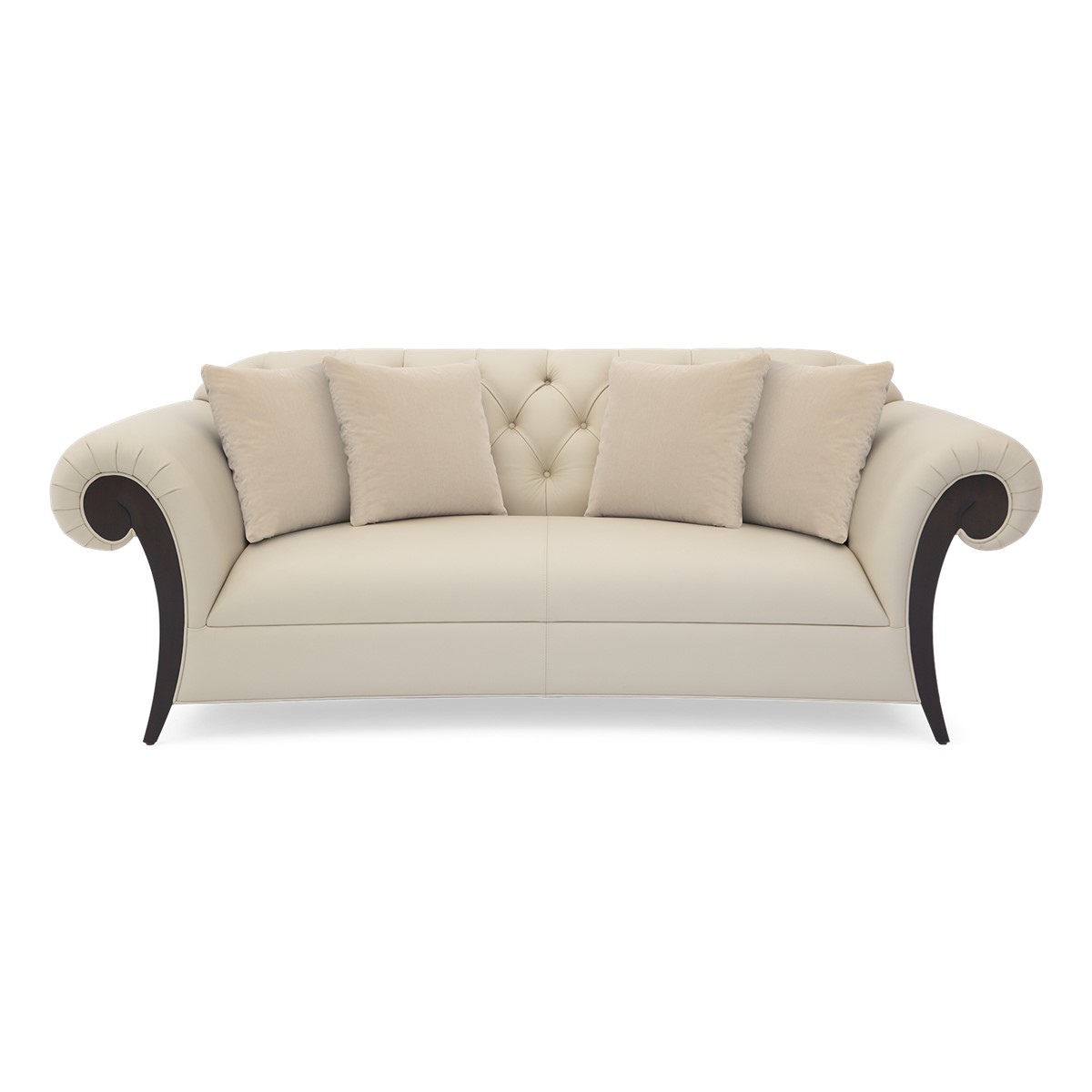 Doweled mortise and tenon frame in solid Mahogany from certified source. Hand-Carved details. Tight seat undersupport with high-density upholstery fill. Diamond shaped tufting in a buttoned formation. Available in a selection of finishes. For residential use only. Commercial use is classified as Special Order Design (SOD), and alternative materials may be required. Contact us for details.