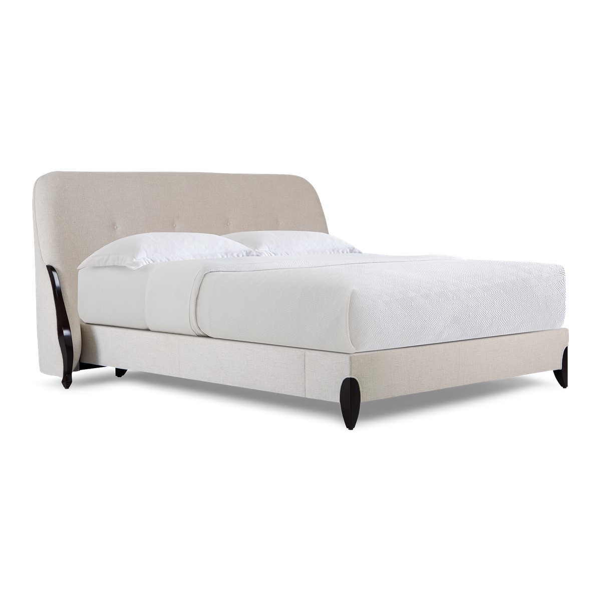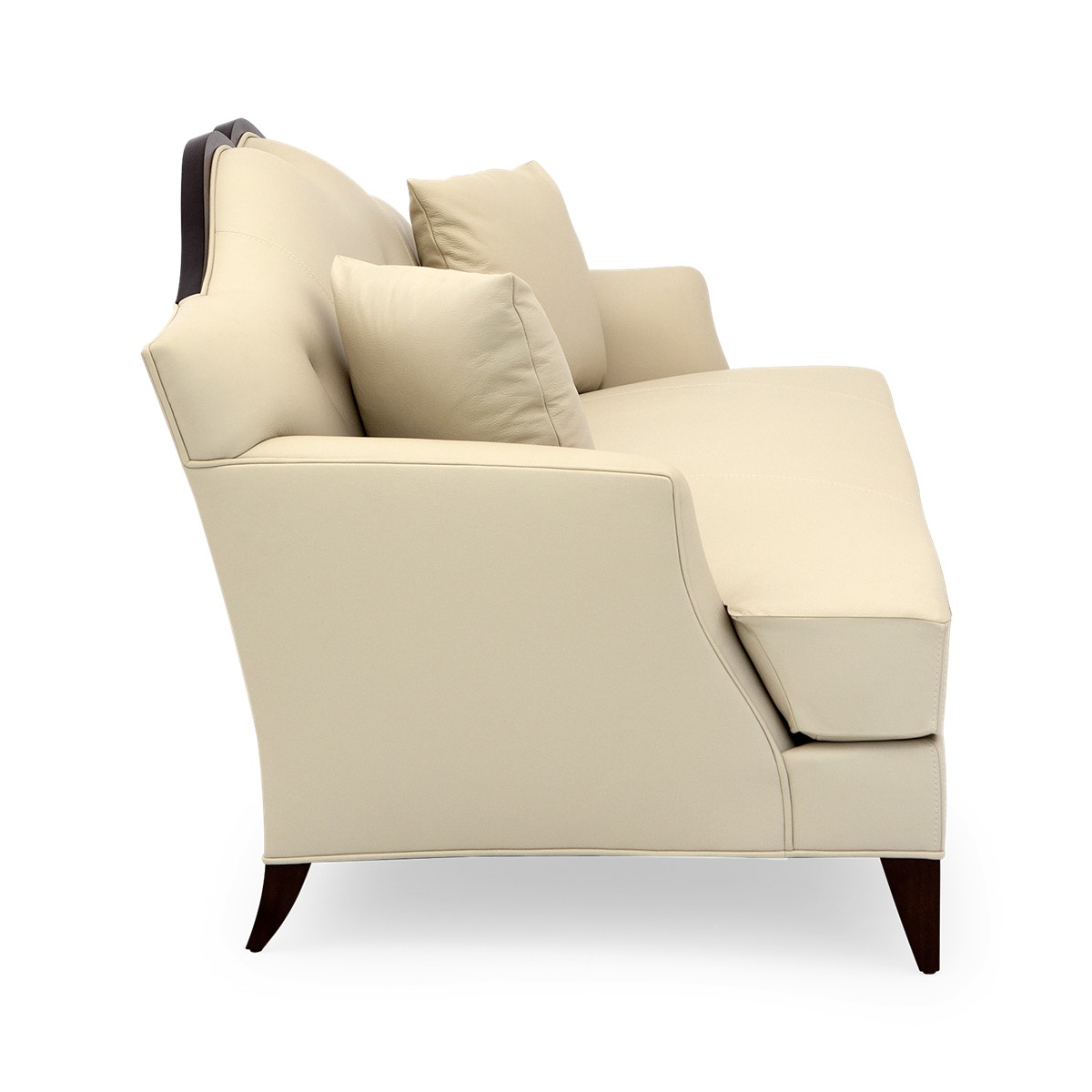 Doweled mortise and tenon frame in solid Mahogany from certified source. Hand-Carved details. Eight-way hand tied spring base, with pocket coil seat cushions encased in high-resilient fill and feathered down jacket. Feathered down throw pillows mixed with PolyFiber for added support. Single row buttoned tufting oozing a modern elegance. Available in a selection of finishes. For residential use only. Commercial use is classified as Special Order Design (SOD), and alternative materials may be required. Contact us for details.