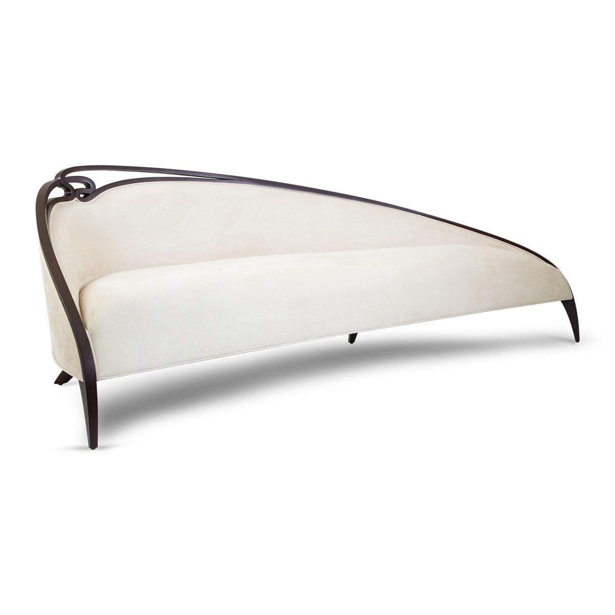 A delicate eyebrow silhouette defines this unique armchair, with an understated elegance and pure lines that allow it to blend seamlessly into any interior.