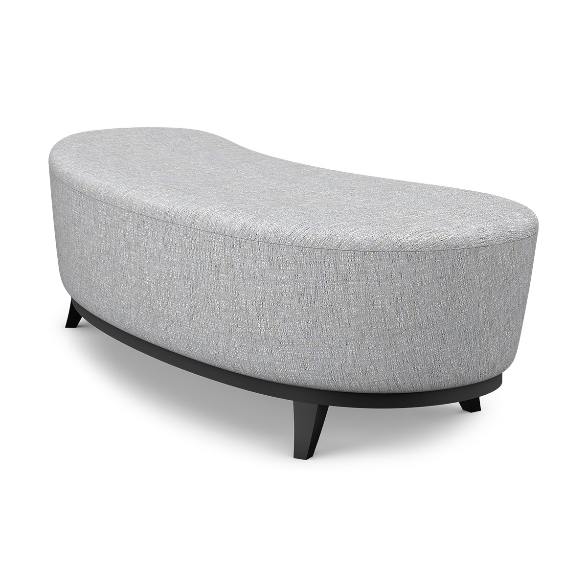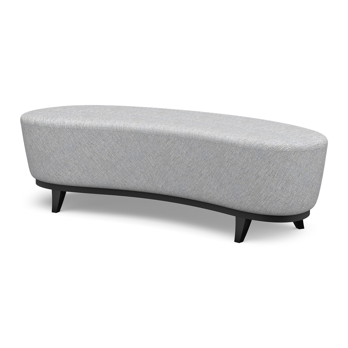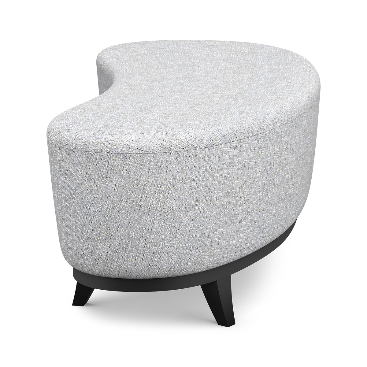 Simplicity and class are exemplified in this pod-shaped asymmetric bench, expertly crafted with an upholstered wooden frame seat and saber feet. The perfect piece to bring understated charm to a hallway, bedroom or dressing rooms.