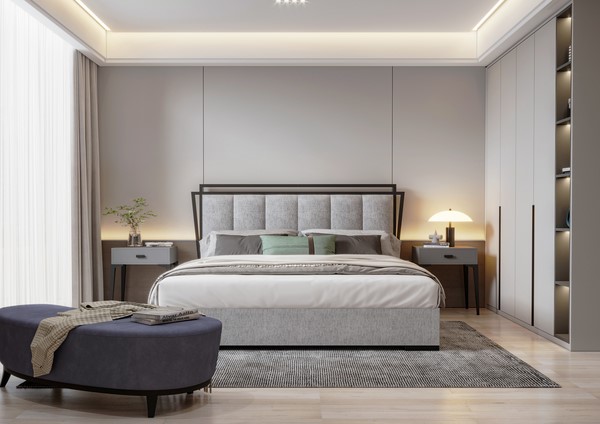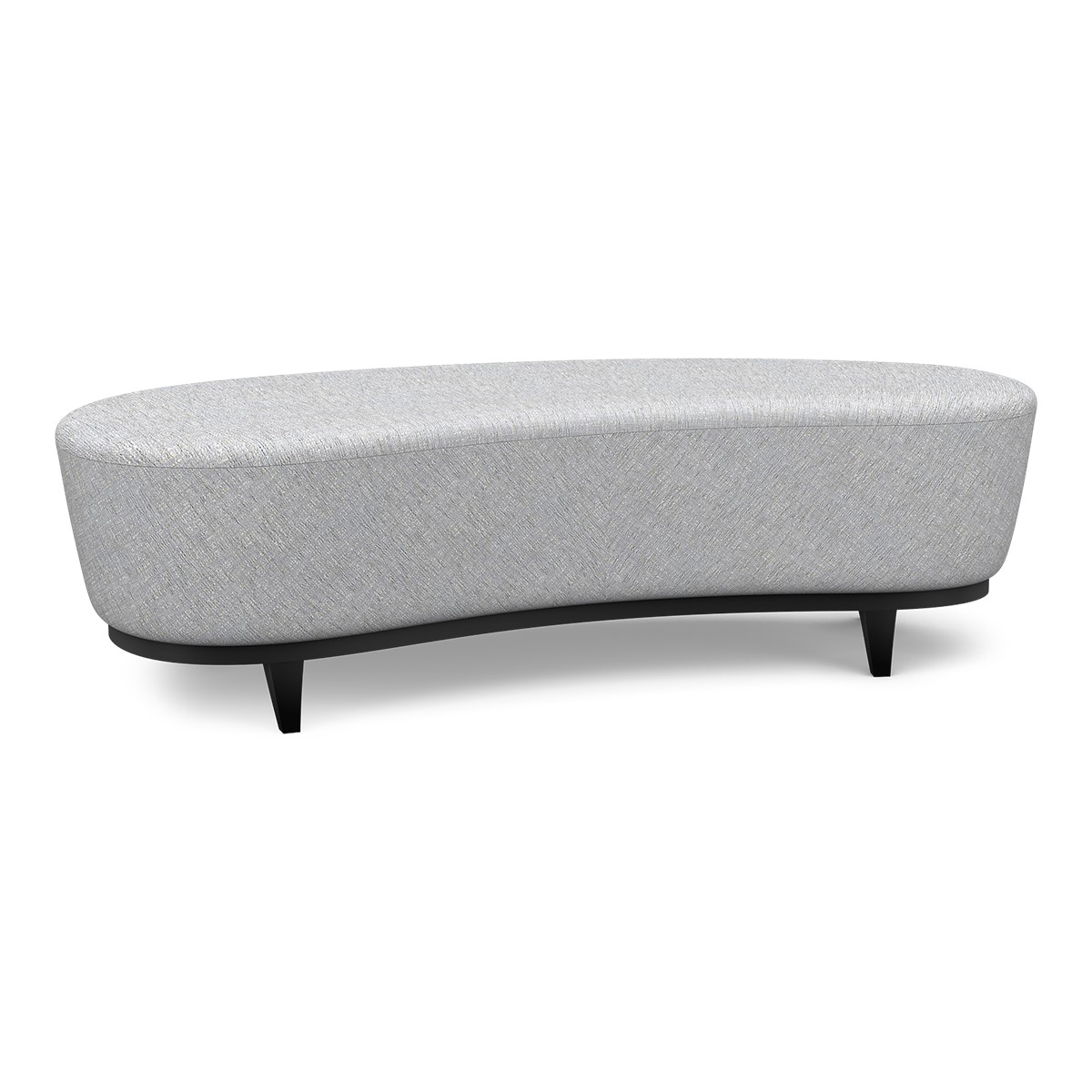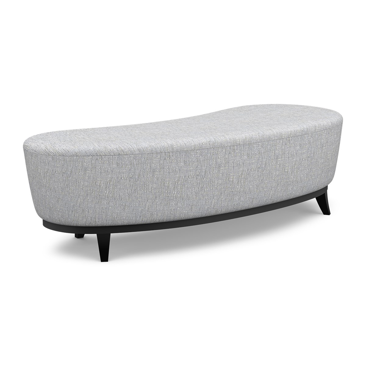 Simplicity and class are exemplified in this pod-shaped asymmetric bench, expertly crafted with an upholstered wooden frame seat and saber feet. The perfect piece to bring understated charm to a hallway, bedroom or dressing rooms.
