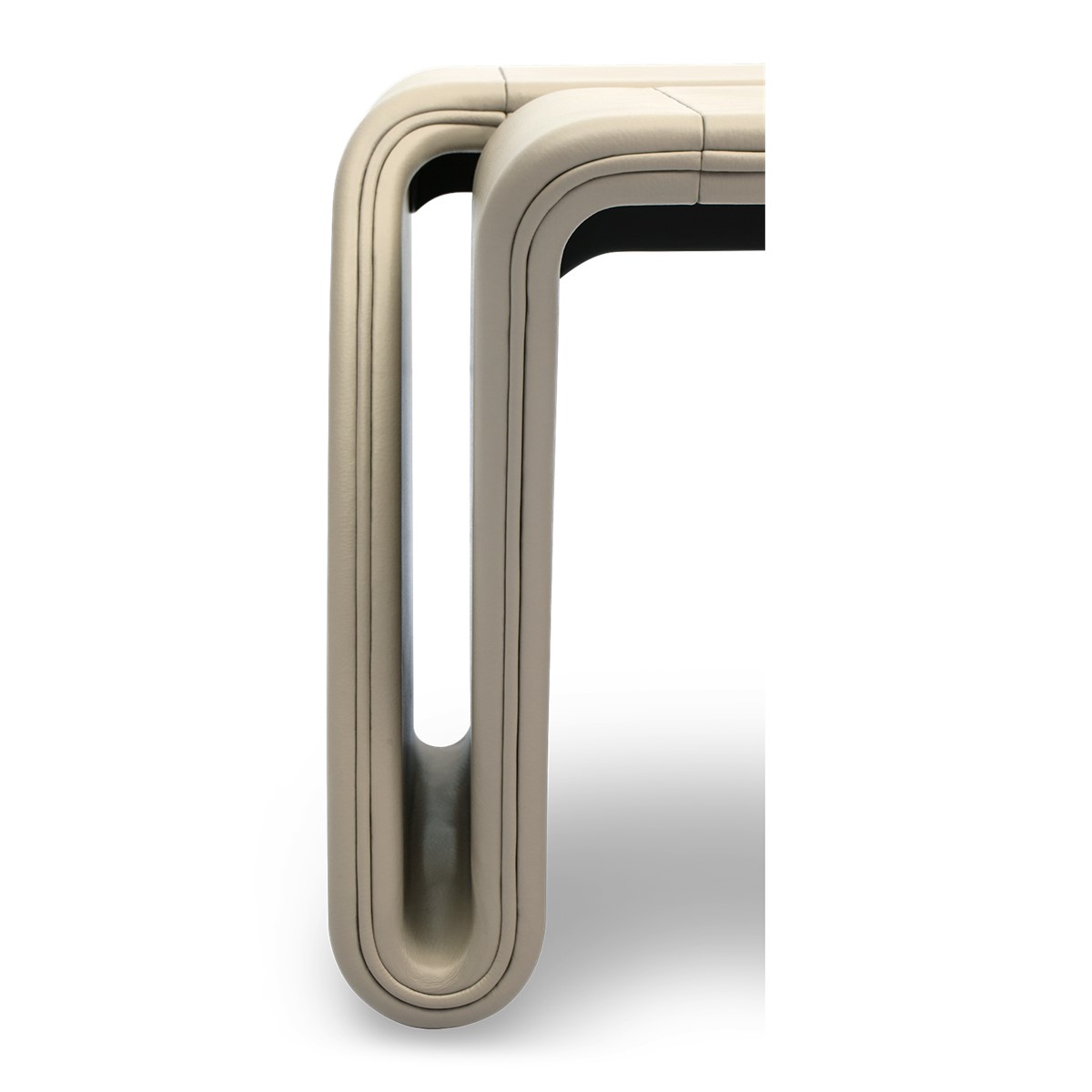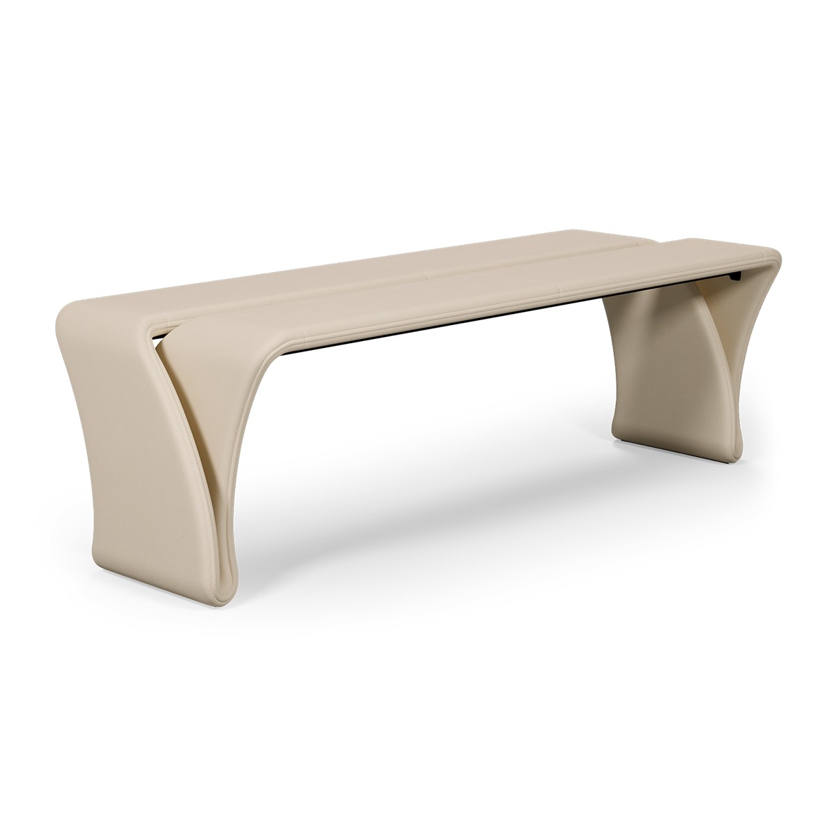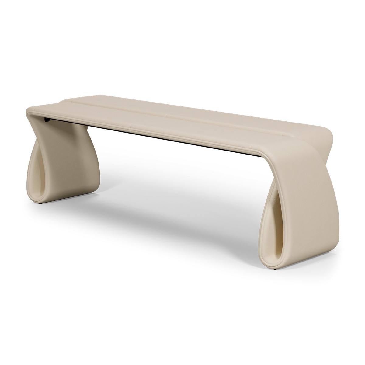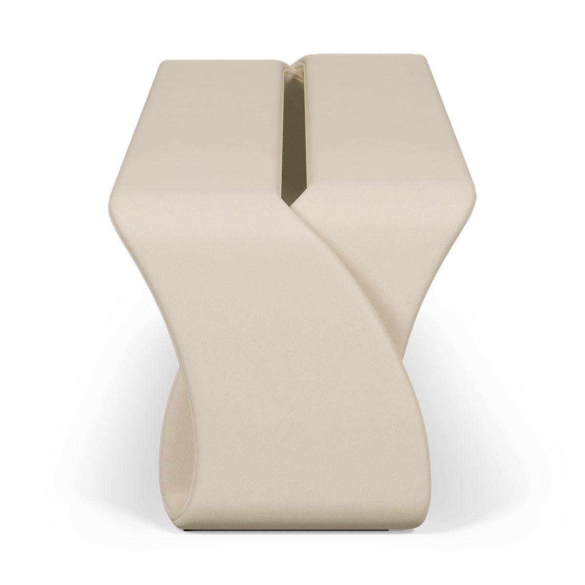 Sleek, sculptural, and effortlessly modern, this infinity-inspired bench is a refined expression of craftsmanship and innovative design. Formed from a single, flowing silhouette and upholstered in soft, smooth leather, it captures the elegant continuity of an endless loop. A striking accent piece, available in two lengths to suit any space.