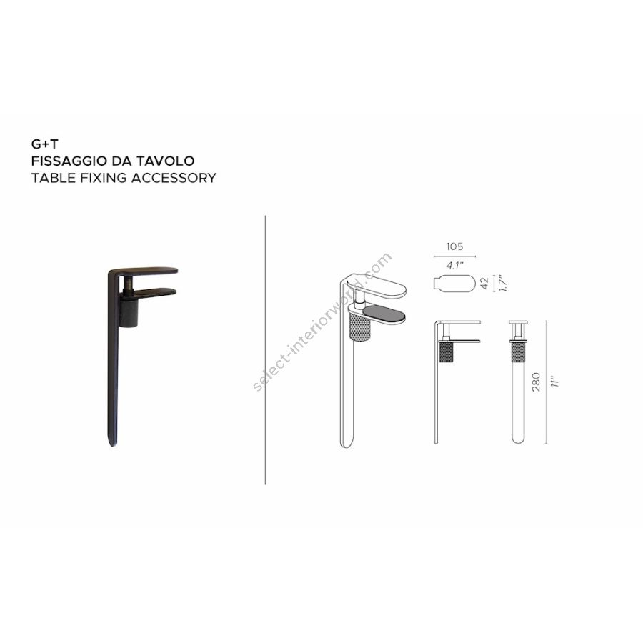 An innovative reading lamp, born from the idea of a portable and luxurious product to meet specific space and installation needs; this makes it suitable for contexts such as yachts and superyachts, historic buildings, or exclusive boutique stores. The head recalls a cocktail jigger (as the name G+T, or gin & tonic, suggests), and the arm is in brass covered with braided leather.