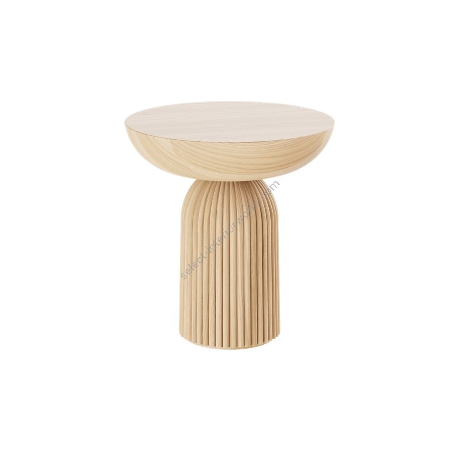 Convesso scheint der Schwerkraft zu trotzen, denn die monolithische Tischplatte balanciert auf der vertikalen Basis. Dieser Kontrast zwischen Oberflächen und Illusion unterstreicht die Schönheit des massiven Eschenholzes.