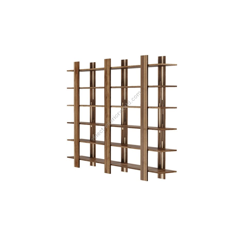 Das Bücherregal Gravità aus Massivholz ist eine einfache und lineare Komposition, die ein Gefühl der Schwebe vermittelt. Es verwendet magnetische vertikale Elemente, um die Verbindungen der Stützflächen zu verbergen.