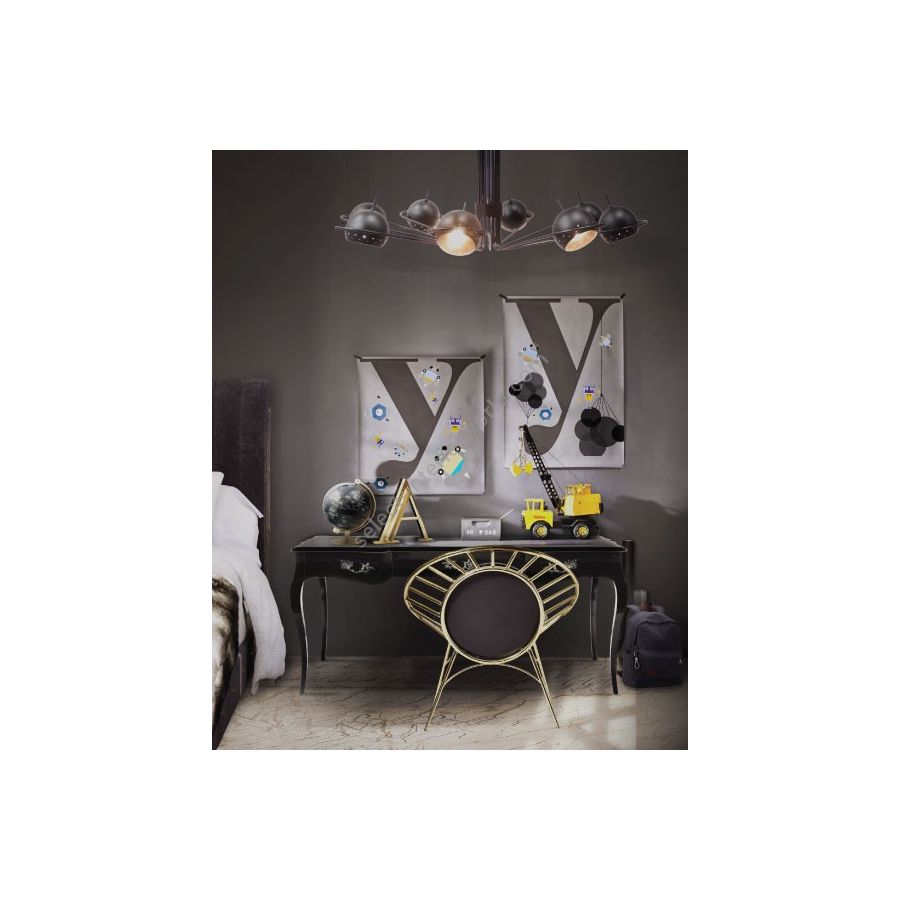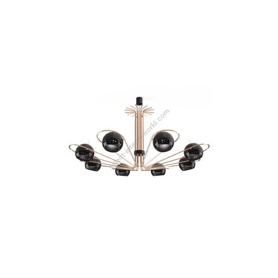 Neil is a modern chandelier with round arcs and spherical diffusers, that were inspired by the golden years of space exploration in the 60’s. It has 8 arms with rotating spheres to cast light to wherever you need in order to create the perfect mood - a rare feature on chandeliers. Therefore, this iron chandelier casts ambient light in all directions. It also offers the choice of having only 4 of the 8 diffusers lit on. With a structure handmade in iron and 8 lamp shades in iron, Neil black chandelier has a mid-century modern design with glossy black exterior and a matte black interior finishing. Ideal as a modern dining room lighting or as a centerpiece in your mid-century living room, Neil will add an innovative touch to your interior design.