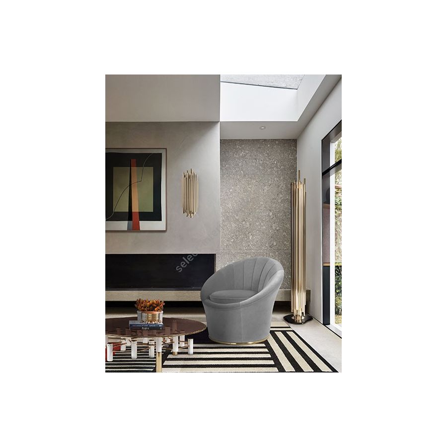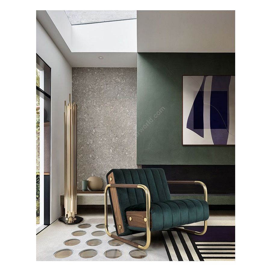 Dave Brubeck was the inspiration for one of DelightFULL’s more luxurious floor lamps. The art deco floor lamp represents in every single detail the way the jazz pianist musician blended very demanding rhythmic structures with improvisation in expressive and accessible ways. Therefore, in this lighting design you can find asymmetrical gold plated tubes in order to attribute a contemporary lighting effect. However, you can customize this modern floor light, since there is available a wide range of finishes: gold, nickel or copper plated, brushed brass or nickel, aged brass or any RAL lacquered color of your choosing. The base of this mid-century modern lamp is handmade in steel with a matte black finish. All in all, Brubeck brass floor lamp is a functional and sculptural lighting able to enlighten any setting with its height of 65.7 inches.