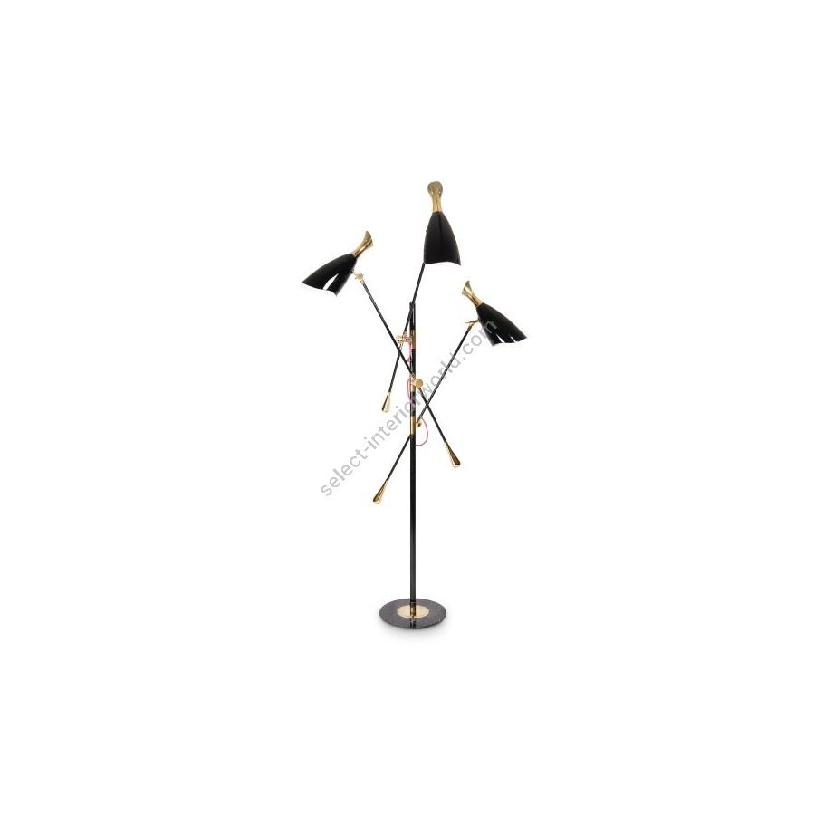 Duke Ellington has been an inspiration to the world to many artists and musicians. Therefore, DelightFULL’s designers have decided to pay a tribute to this iconic jazz musician and create Duke floor lamp. With a short silhouette and a single swing, Duke floor lamp is a retro-styled accessory for every single mid-century modern interior design. Each cone lamp shade is conducted by a brass arm and its counter-weight. The matte black shades drape on the sides to reveal a white interior and have gold plated accents at the sockets. The three-cone shades that adjust vertically and horizontally have an overall height of 63.7 inches.