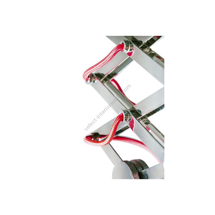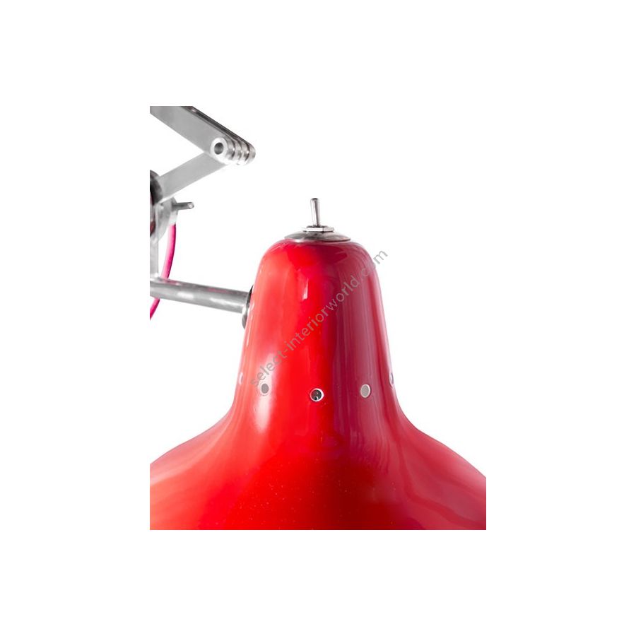Diana pendant lamp is an industrial-inspired design that embodies all the simplicity and sophistication of the mid-century modern age. It is handmade in brass and aluminum. The body, built out of brass has a standard black nickel plated finish, while the shade features a standard matte red lacquer on the outside. However, it can be customized using any RAL color of your choosing. It has a small switch on the back of the shade, creating a convenient way of switching the light on and off. This industrial pendant lighting design has also a red textile wire, which can be customized as you wish. It is a small suspended light perfect for any contemporary kitchen, but it does also look great as a bedside lamp in an industrial-inspired bedroom.