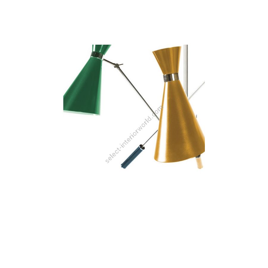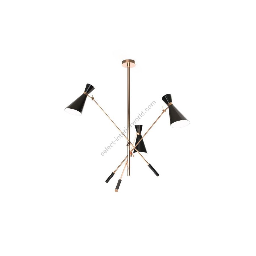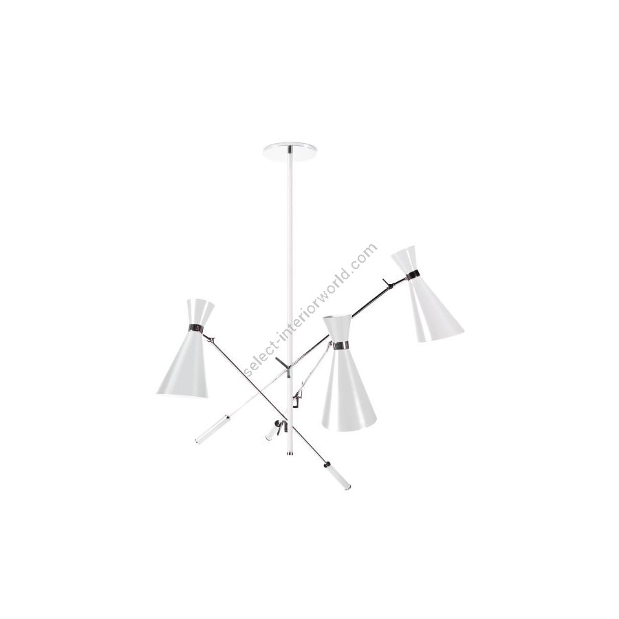 Stanley retro pendant lamp is inspired by some of the most iconic lighting designs of the 1960s. It is handmade in brass and aluminum, with a nickel plated finish on the body, and glossy black lacquer on the outer part of lampshades. The inside is lacquered a matte white. With three changeable arms, this mid-century modern lighting fixture has three counterweights all built of iron. All these features can be customized by request to include different finishes and any RAL color of your choosing. A modern light pendant that embodies all the best from the from the 50s and 60s interior design style, which looks amazing in any mid-century dining room, or a colorful kitchen.