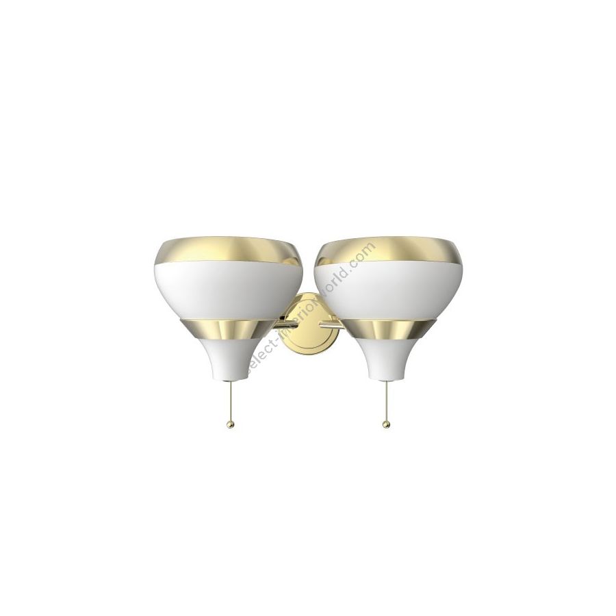 Hanna is a contemporary wall lamp that will bring a smooth ambiance your mid-century modern interior. With a structure made in brass, this wall sconce is gently covered by a gold plated bath, while its aluminum lamp shade is outlined by a gold plated and matte white finish. The on/off switch is located below the lamp shade with a stylish design for a quick and easy use. This white wall lamp can be customized and instead of having one lamp shade, you can choose to have two, in order to provide a more balanced look. With a minimalist style, Hanna wall light fixture is a luxurious addition to any space. Ideal as a bathroom mirror light or as an entrance wall lighting, Hanna is a stylish lighting creation that will adorn your wall with equilibrium and dynamism.