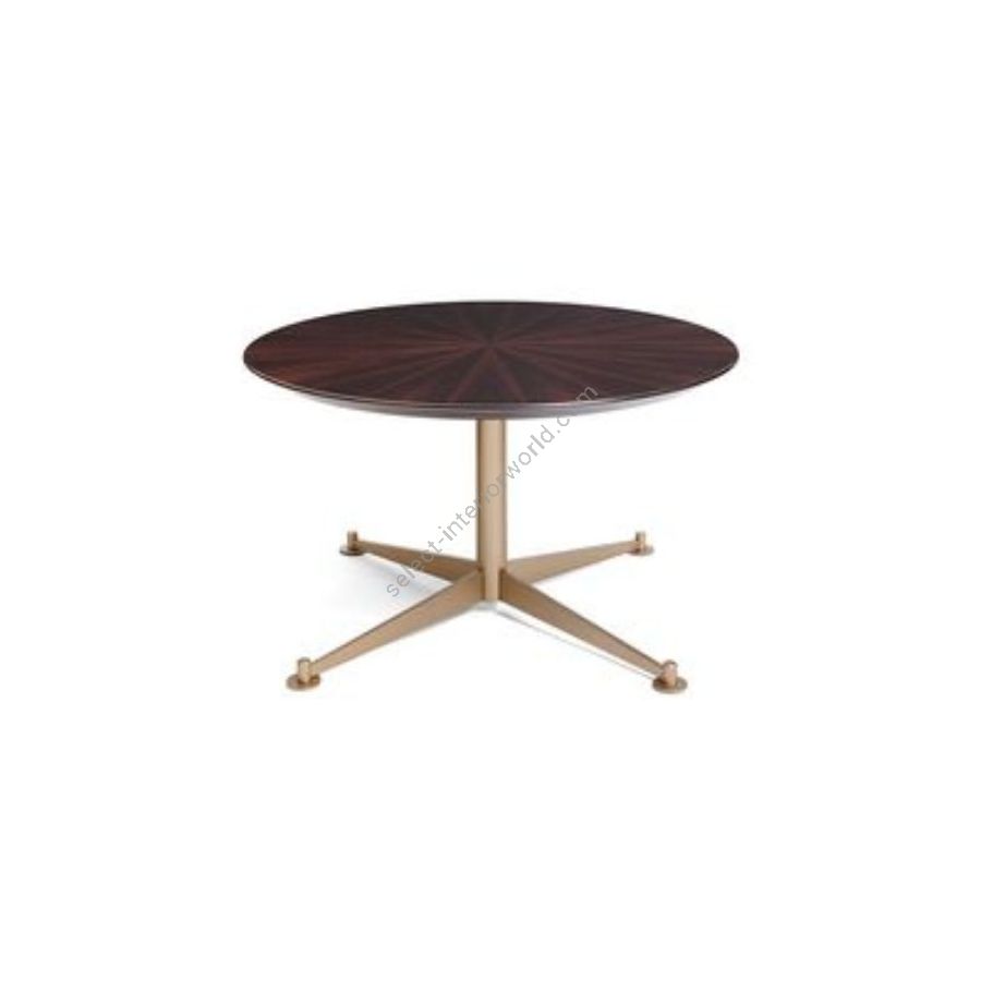 Der Metallfuß ist auch komplett in Glanzmessing, Glanzchrom, Bronze, satiniertem Messing, Zinn oder wolkiger Bronze erhältlich. Der Filippo-Teetisch ist mit einer Tischplatte in schwarzem Glanzlack oder in Hochglanz- oder Matt-Makassar-Ebenholz erhältlich.