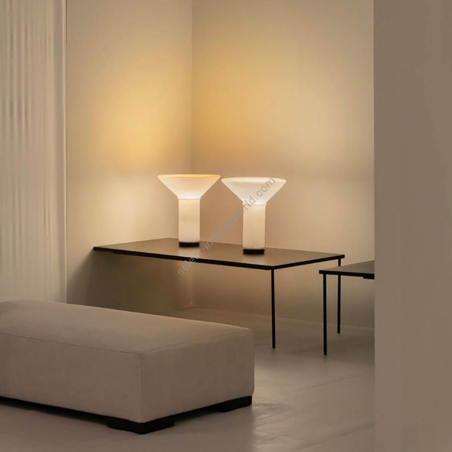 Era ist eine Tischleuchte, die die Handwerkskunst preist, einen der kennzeichnenden Werte der Marke und der Arbeit ihrer Designer. Basierend auf der Idee einer Ära als physischem und zeitlichem Raum beansprucht die Era-Lampe die Verwendung von Glas als ausdrucksstarkes und konstruktives Element. Durch die Kombination von Formen erreicht es maximale Ausdruckskraft durch Licht und Farbe. Era ist eine Tischleuchte, die die Handwerkskunst preist, einen der kennzeichnenden Werte der Marke und der Arbeit ihrer Designer. Die Era-Lampe wurde der Erfahrung handwerklicher Hände anvertraut, um Details von hervorragender Verarbeitung herzustellen. Das Ergebnis dieser Mischung aus Handwerkskunst und zeitlosem Design ist eine warme Beleuchtung mit klassischen Proportionen, die durch begleitendes Licht eine ruhige Umgebung schafft.
