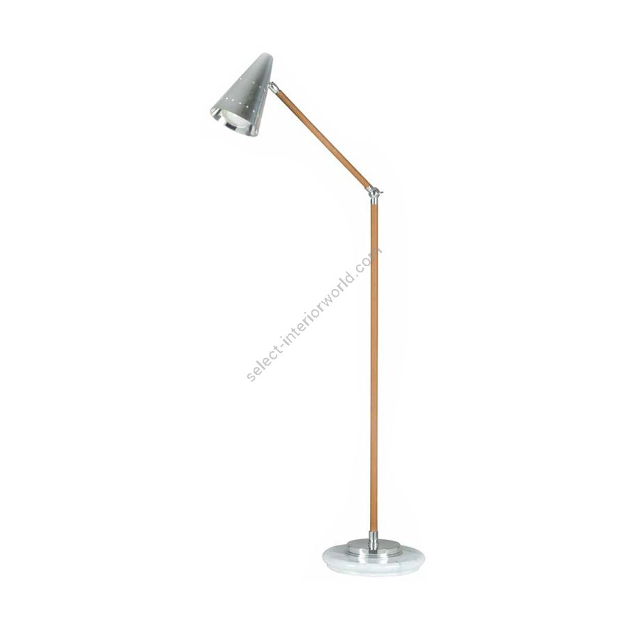 Stehleuchte aus Messing mit Schaft bezogen mit handgenähtem Echtleder. Marmorsockel.