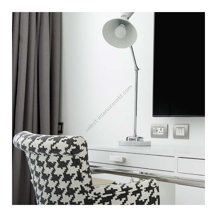 Chrom-Finish mit weißem Marmorsockel / Lampenschirm aus weißem Metall