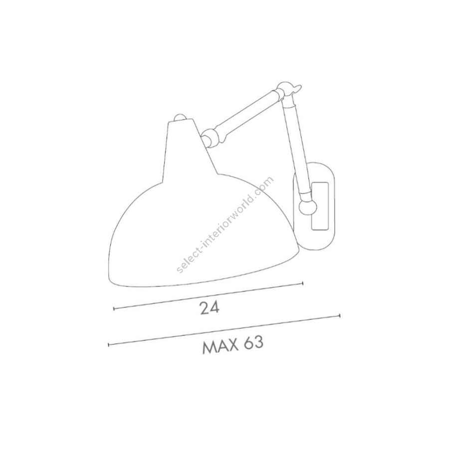 Wandleuchte mit verstellbarem Arm in drei Teilen und Lederdetails. Gestell aus Messing mit schwarz lackiertem Metallschirm.