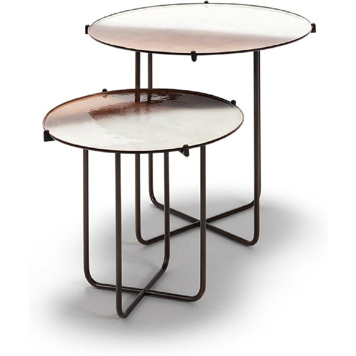 Ispirato al linguaggio visivo dell’arte astratta, il tavolino Astratto traduce forme pure e contrasti materici in un oggetto di design essenziale. Le superfici smaltate, con le loro variazioni cromatiche e riflessi irregolari, evocano pennellate sospese nel tempo, mentre la struttura leggera ne sottolinea la natura scultorea. Un omaggio alla libertà espressiva e alla poesia della materia.