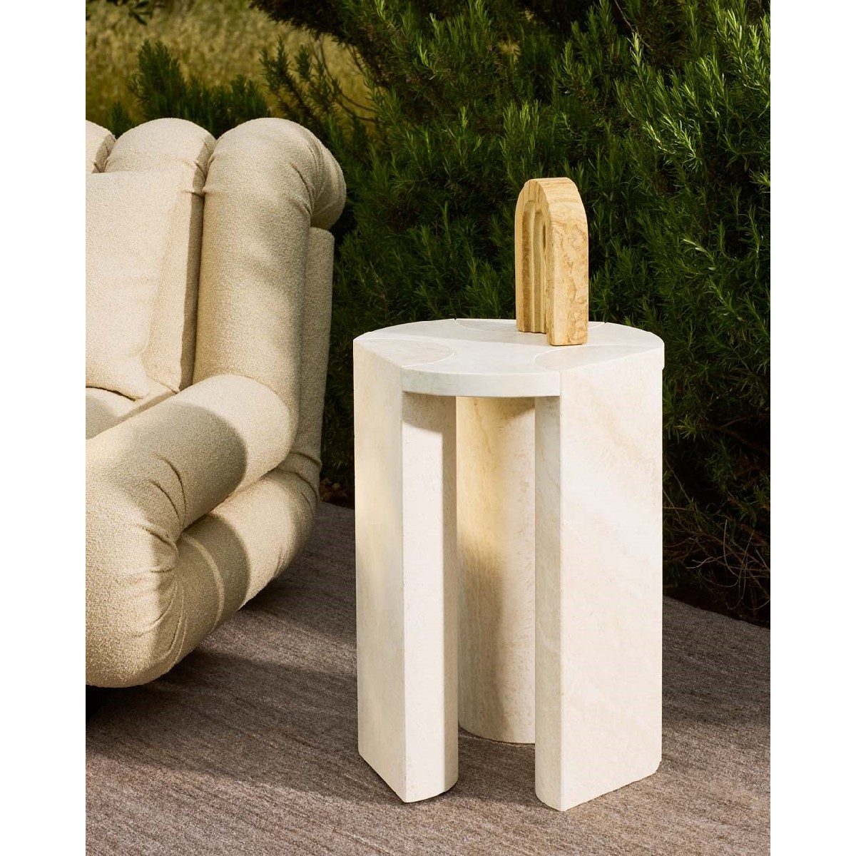 Serele è disponibile in marmo o pietra, materiali naturali e ideali per le zone outdoor, e in tre diverse dimensioni.