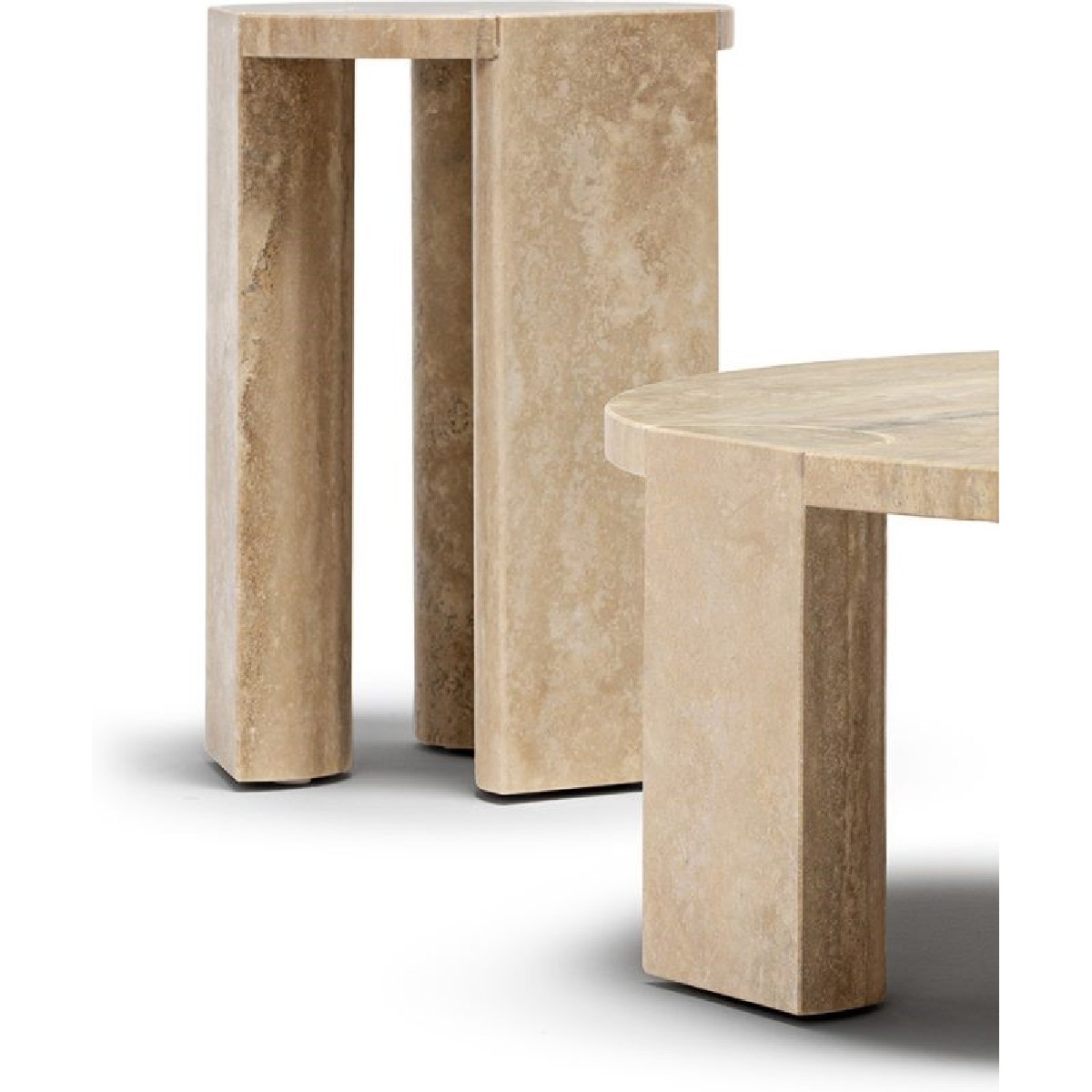 Le linee geometriche, gli angoli smussati e le tonalità neutre di questa collezione di tavolini richiamano un'idea di sintesi totale, come in un dipinto di Morandi.