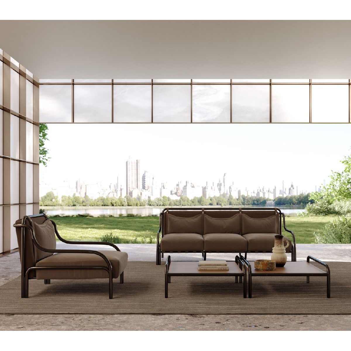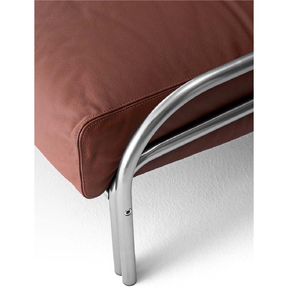 Ultra-confortevole e impermeabile, l'anima dell'imbottito poggia su una struttura tubolare in acciaio inox, disponibile in due finiture differenti: grigio chiaro e canna di fucile. I rivestimenti esterni sono in pelle o tessuto.