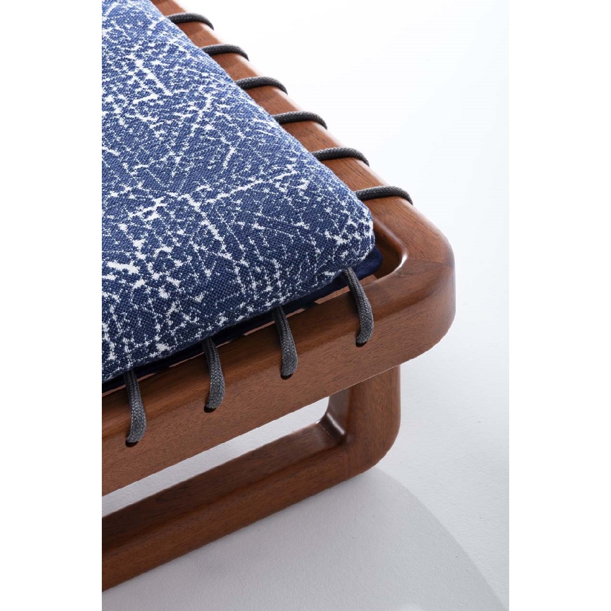 La struttura levigata in mogano Sapelli valorizza le differenze dei diversi elementi. Le finiture del legno si sposano in modo pregevole con la soffice consistenza dell'imbottitura.