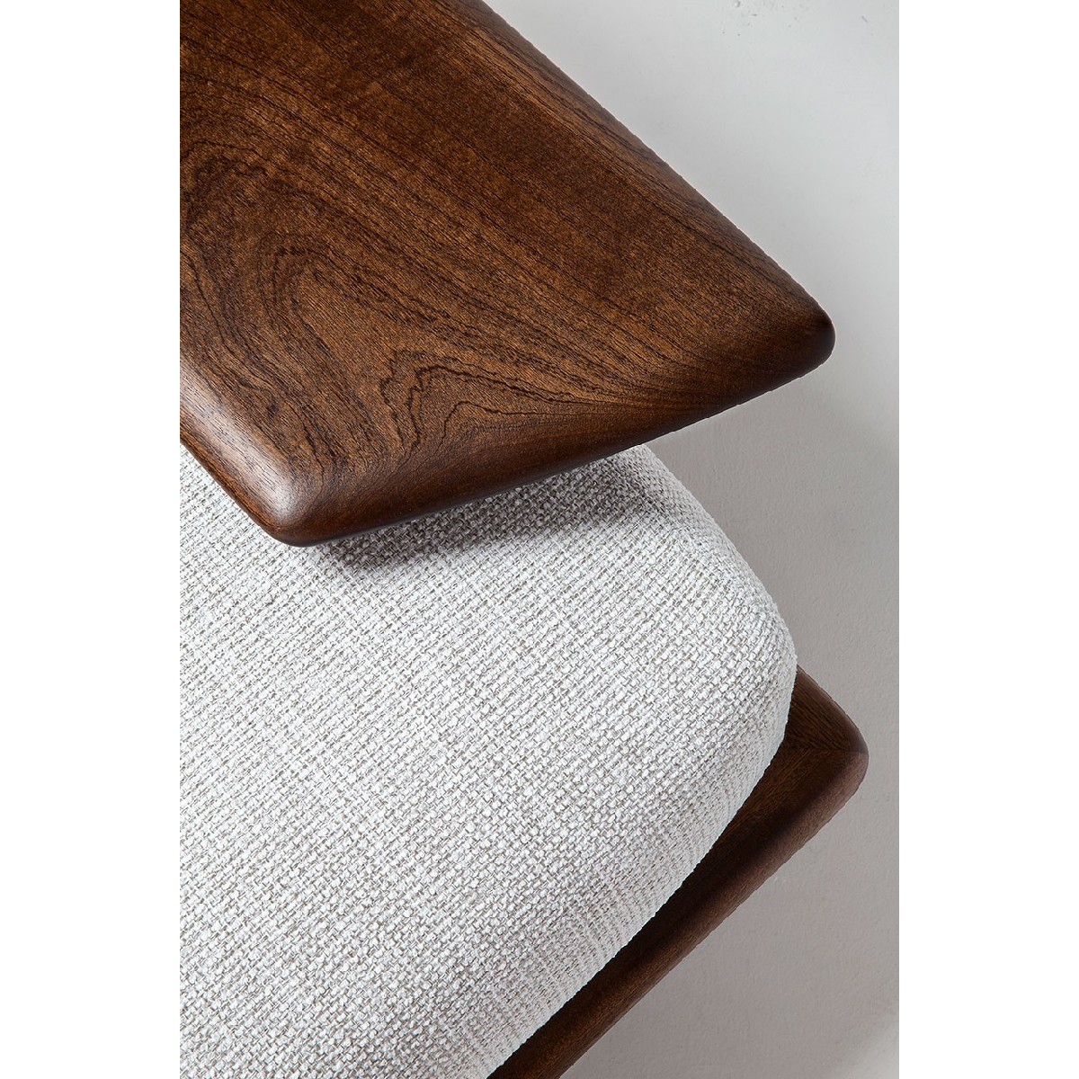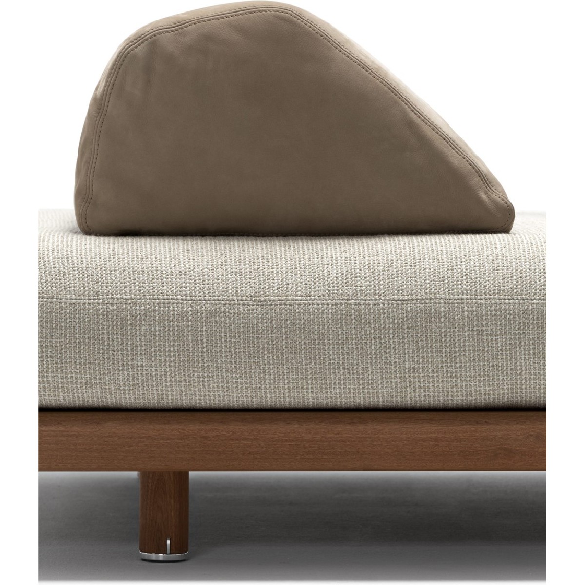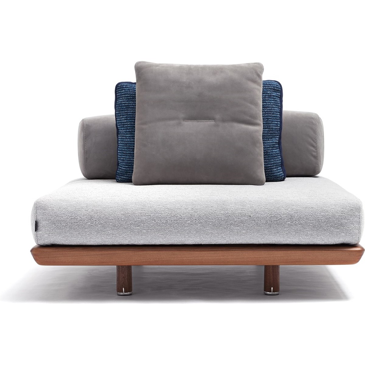 Mentre gli accessori, così come la struttura, sono in mogano, i profili morbidi dei cuscini si intrecciano perfettamente a quelli della seduta. Per immergersi in un comfort di puro design.
