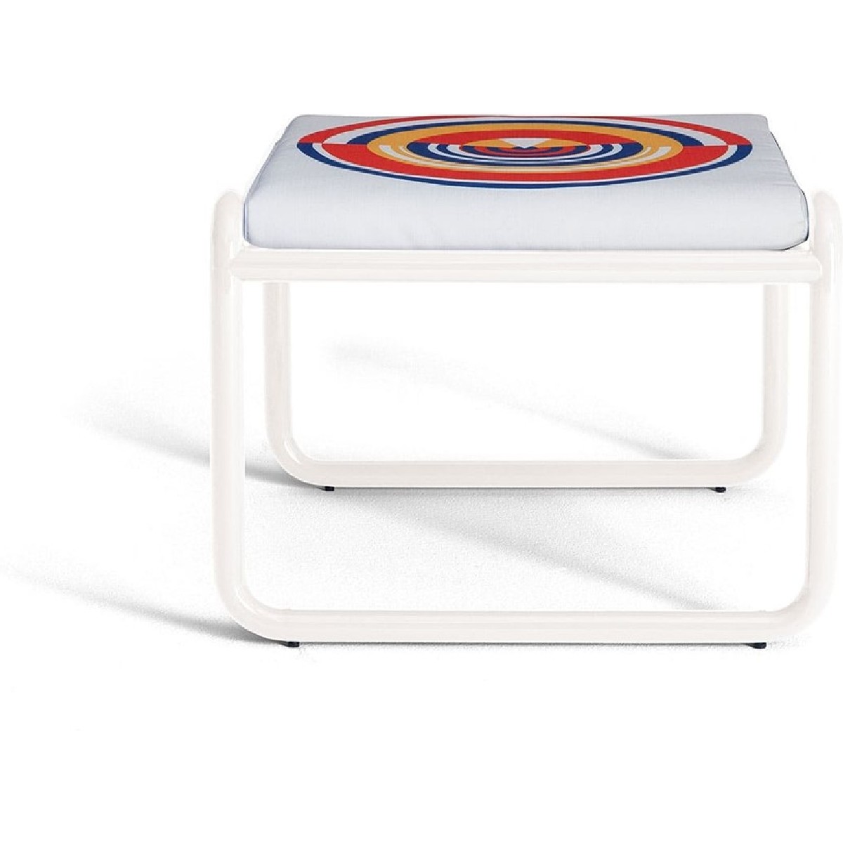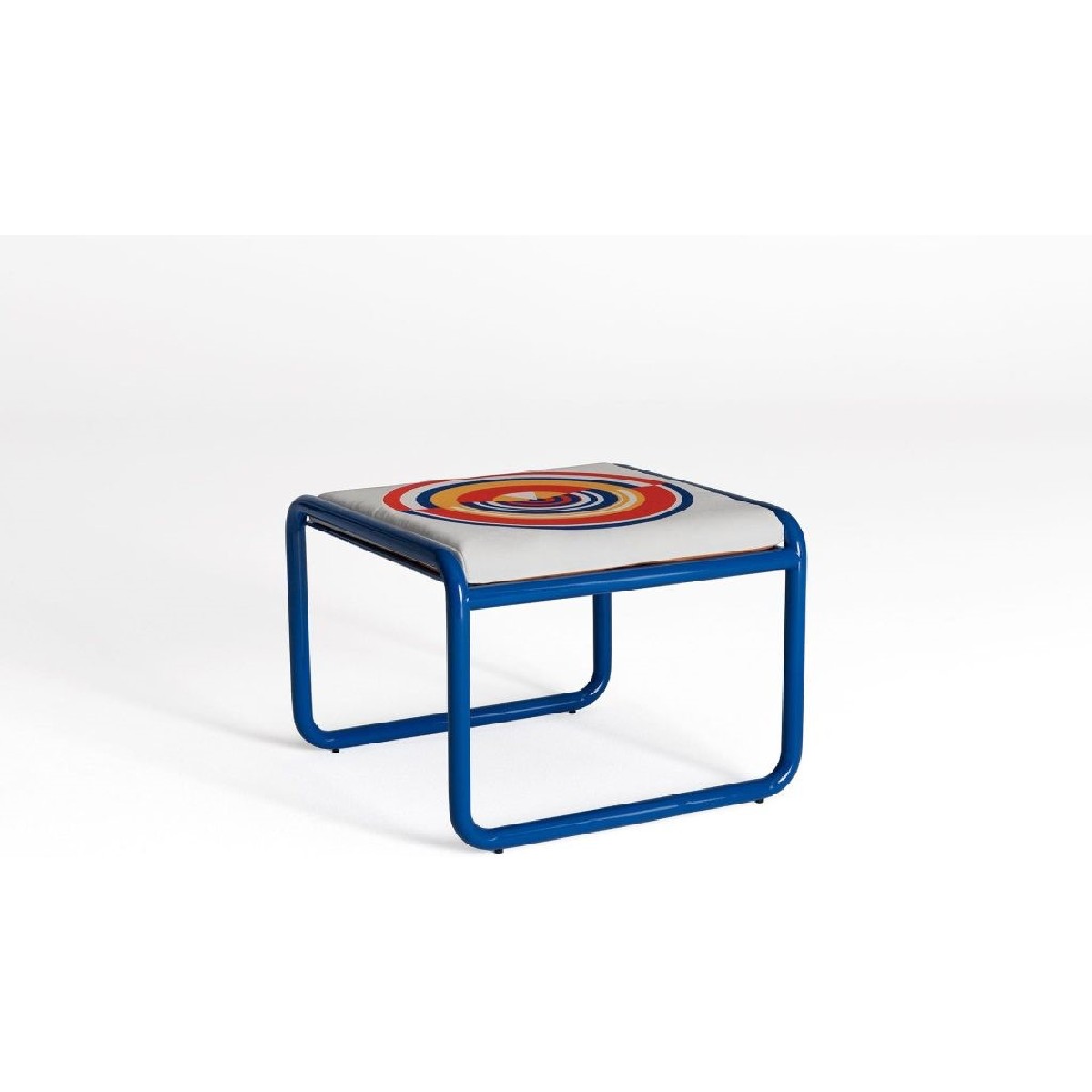 Linee sottili e forme smussate compongono il design di Locus Solus Pouf. Il tubolare in acciaio verniciato in vari colori, incontra il piano retato adornato dai morbidi cuscini realizzati a mano. Il rivestimento in tessuto stampato con gli esclusivi artwork “Locus Solus”, o disponibile in tutto il campionario tessuti di Exteta, regala un immancabile tocco di stile.