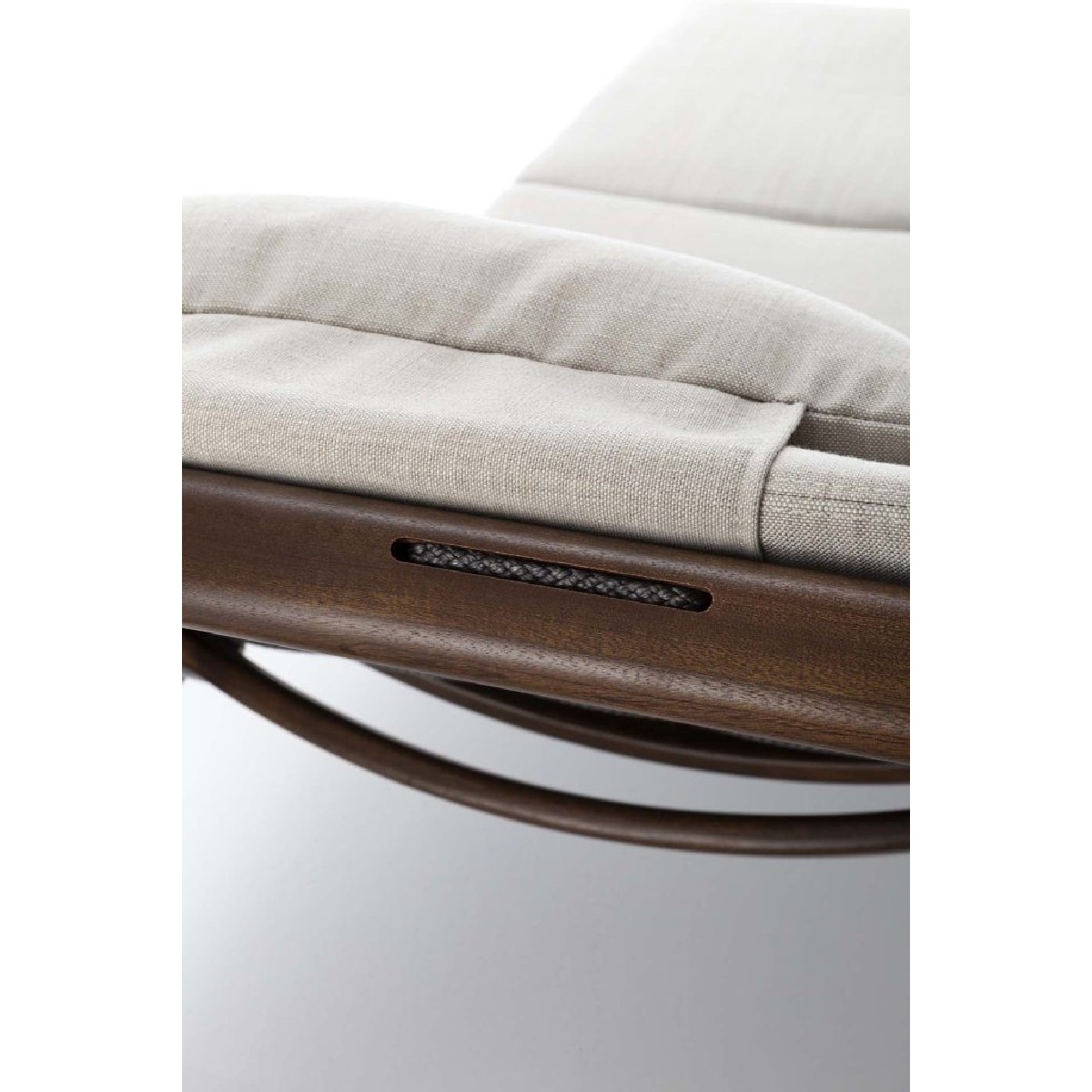 La struttura in mogano evoca la tradizione artigiana del telaio, e come una tela, l'Extetiflex è tessuto a mano su di essa. Il materiale impermeabile è disponibile in tre varianti di colore e composto in PVC, resistente ai raggi UV e agli agenti atmosferici, il che lo rende perfetto per l’outdoor. La trama garantisce la massima tenuta e il massimo comfort.
