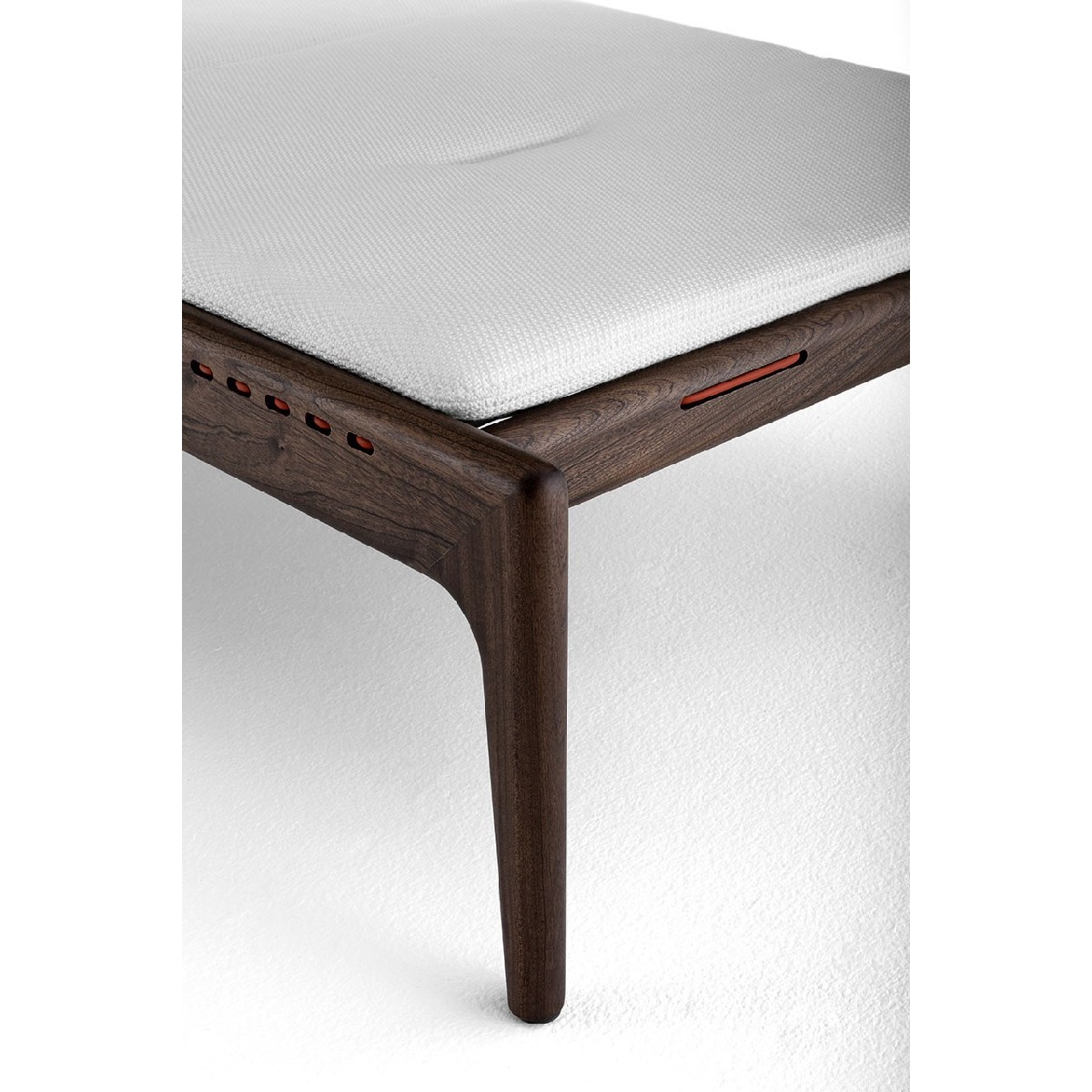 La struttura in mogano, realizzata con antiche e raffinate tecniche di ebanisteria italiana, si fonde alle trame in Extetiflex per creare un disegno pulito, distintivo, elegante.