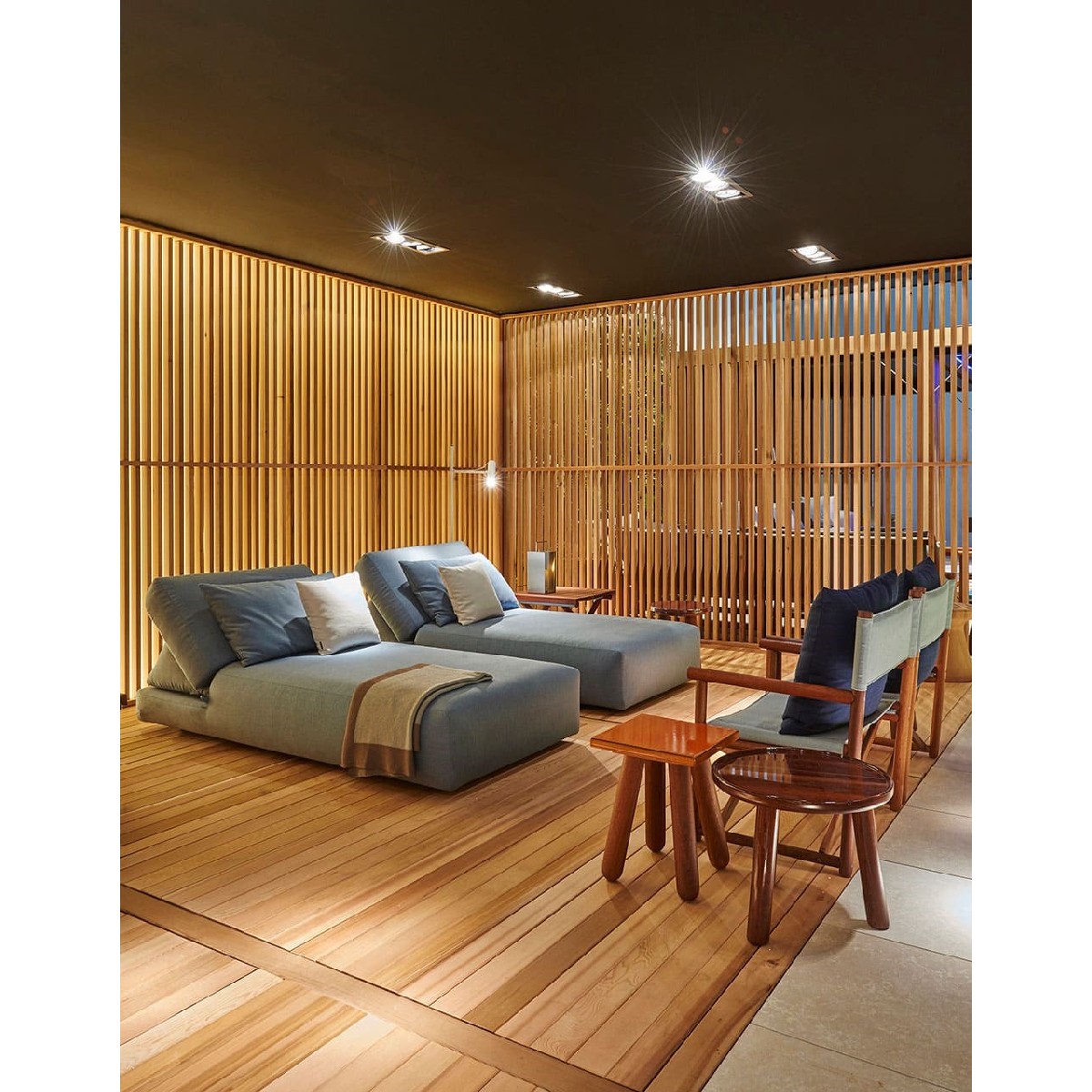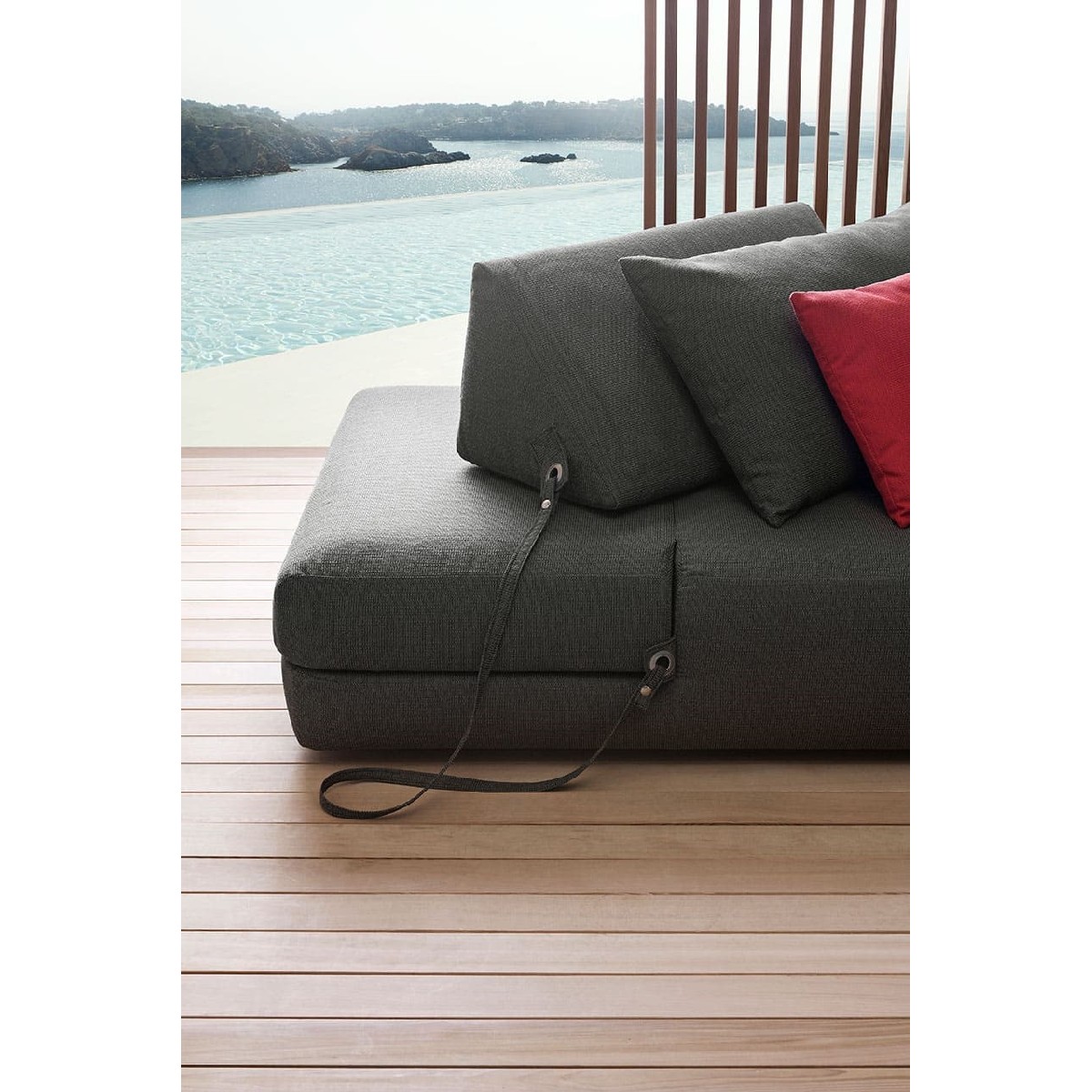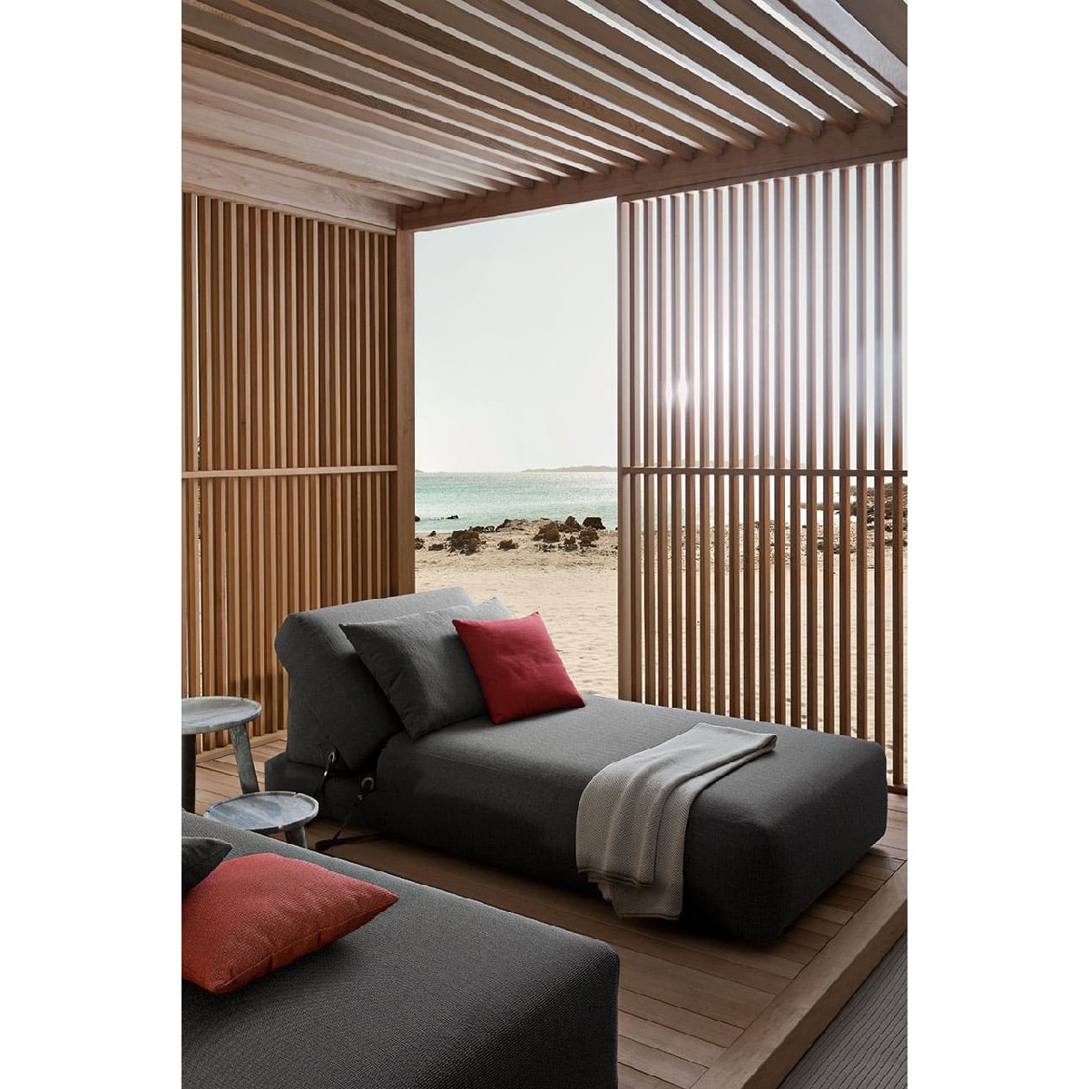 Gli ampi volumi portano all’esterno il comfort di un’imbottitura dedicata solitamente all’arredamento d’interni. La seduta monolitica, senza gambe, rende il divano un continuum per regalare un’esperienza di seduta ancora più morbida e rilassante.