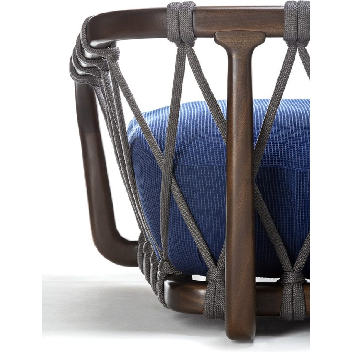 Come la trama di un romanzo, le linee di corda si incrociano e si separano per ritrovarsi nuovamente. Una seduta resistente e flessuosa che si adatta ai movimenti del corpo, accompagnandoli.