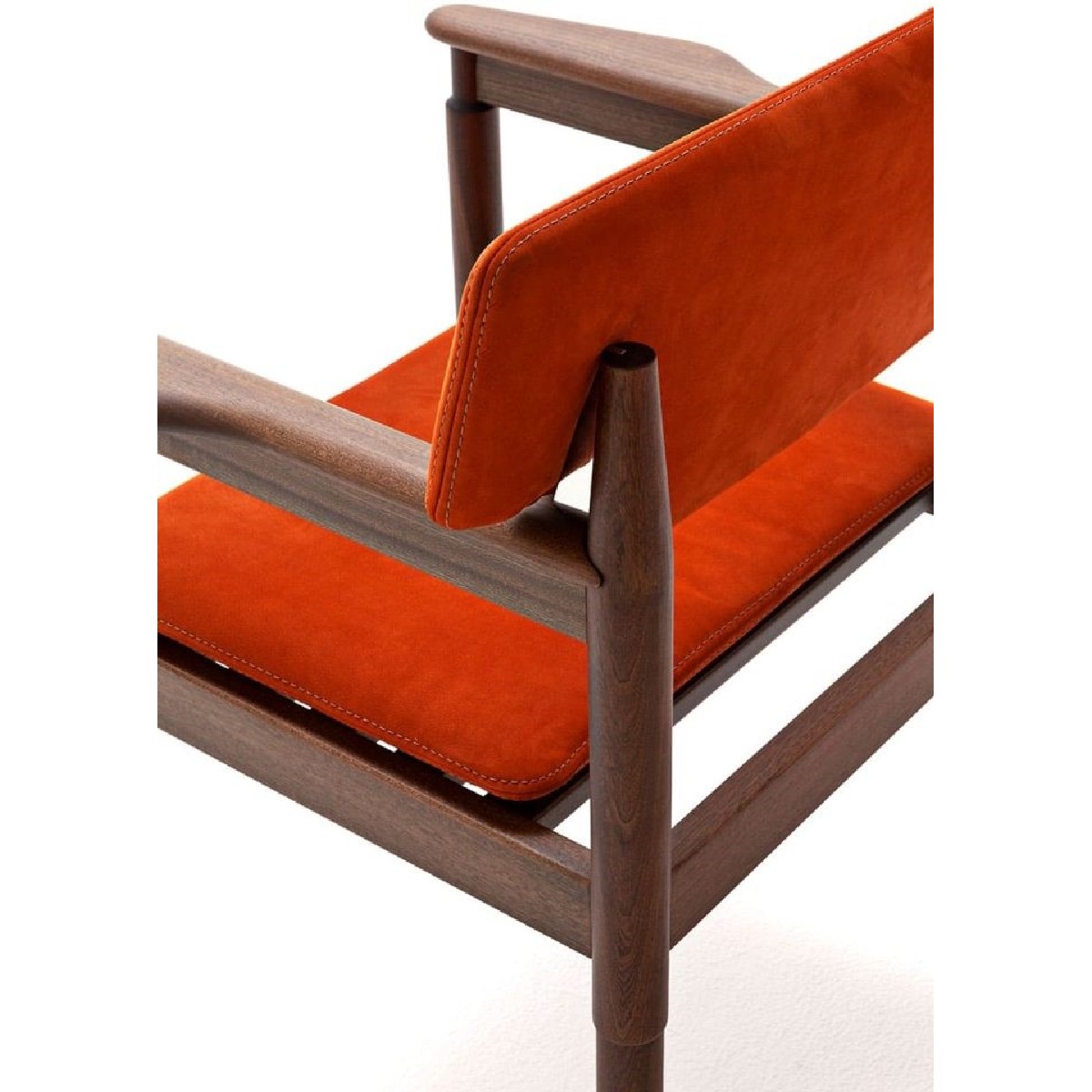 I dettagli ricamati sono il prezioso dono che valorizza l'aspetto artigianale della seduta, caratteristica che richiama una tradizione profondamente legata alle sue radici culturali. I piedini a T, in acciaio inox, arricchiscono il disegno con un tocco contemporaneo.