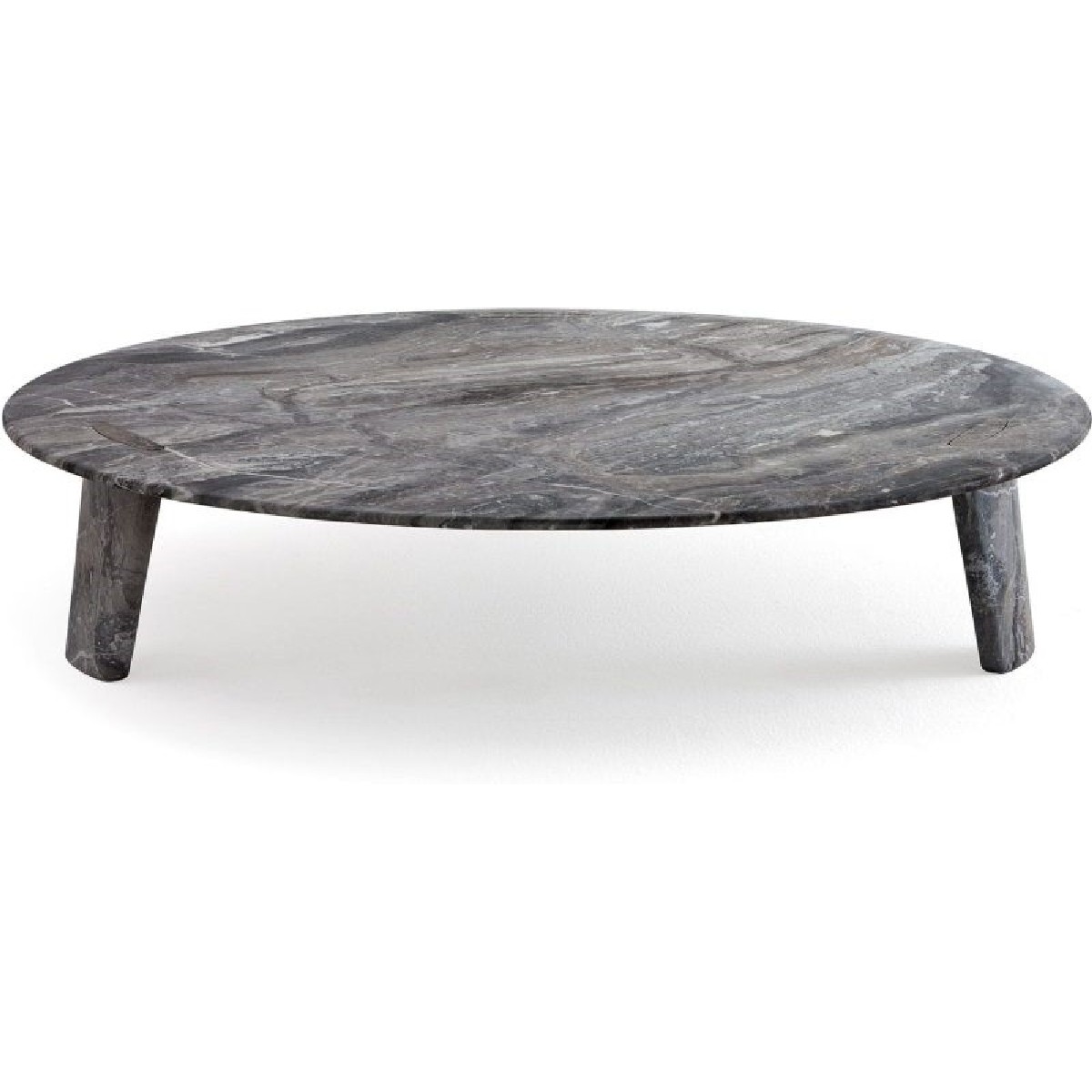 L'equilibrio tra gli elementi è la caratteristica più iconica del design di Biscuit Coffee Table: il piano è incastonato alle gambe marmoree da giunzioni visibili tra le parti.