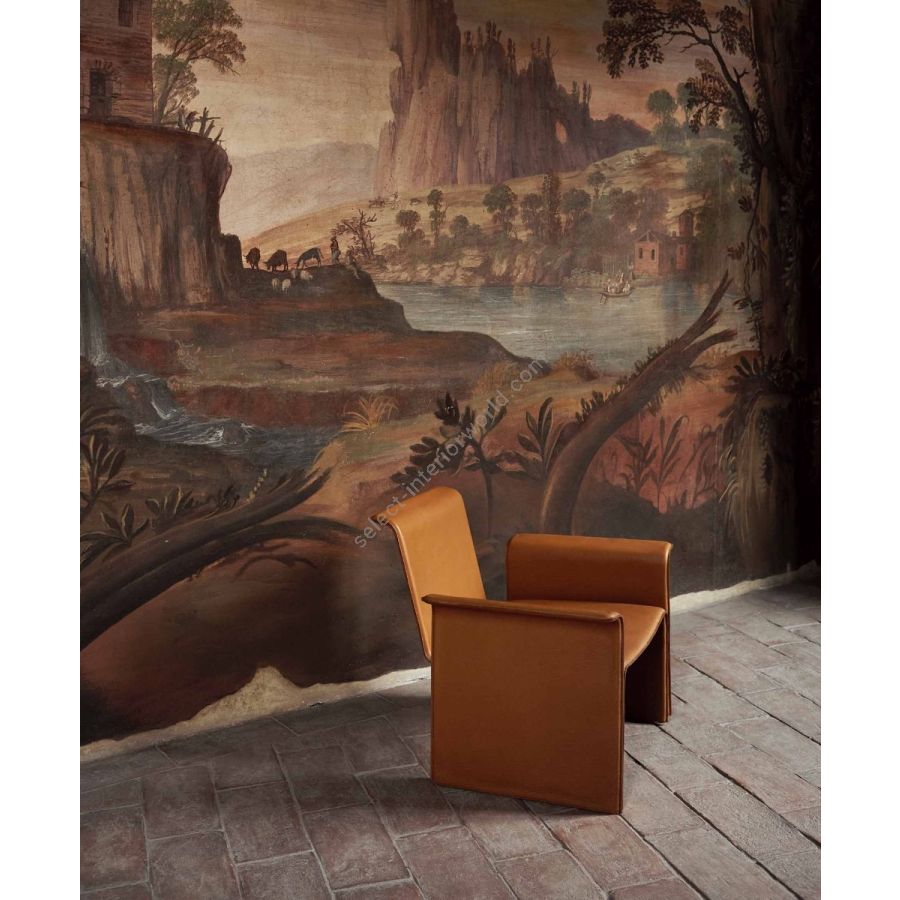 The Shell Armchair blends formal rigor with refined comfort. A stainless steel frame ensures durability, while hand-fitted saddle leather defines its continuous lines. Welcoming and timeless, it recalls the protective shape of a shell, crafted with artisanal precision.