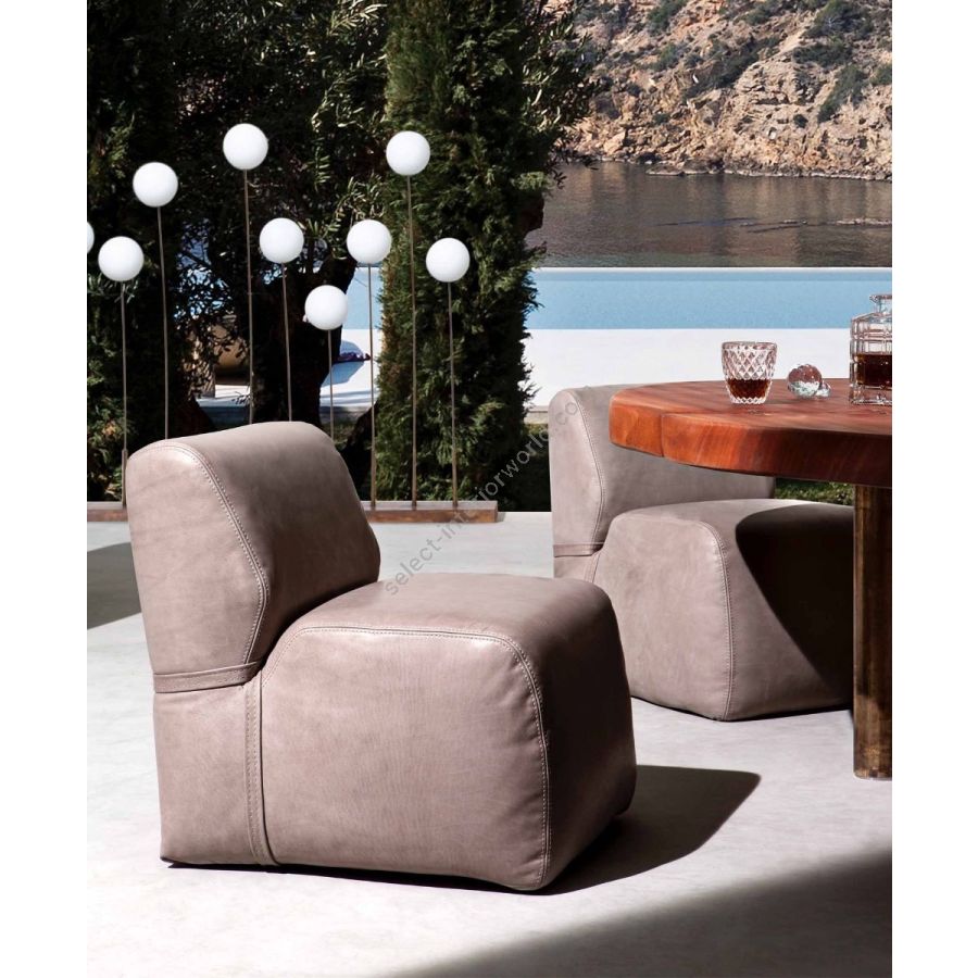 The Soft Armchair combines sculptural strength with tactile softness. Different foam densities create a monolithic yet light form, divided by precise stitching. Covered in outdoor leather or fabric, it delivers comfort, elegance, and a unique balance between solidity and ease.