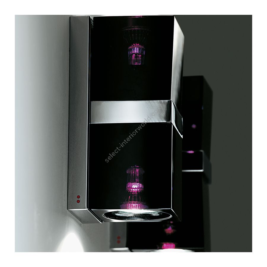 Diese Kollektion umfasst eine Hänge-, Tisch-, Wand- und Deckenlampe, alle für den Innenbereich. Die Diffusoren sind in drei Ausführungen erhältlich: aus Kristall, innen sandgestrahlt, und aus schwarzer oder weißer Glaspaste. Für alle Varianten ist die Hauptstruktur in poliertem Chrom oder in Kupfer-/Messingausführung für die Wand- und Deckenlampen mit Gelenkdiffusor erhältlich. Die Lampe wird mit Netzstrom betrieben und ist für den Einsatz mit Halogen- und LED-Glühbirnen geeignet.