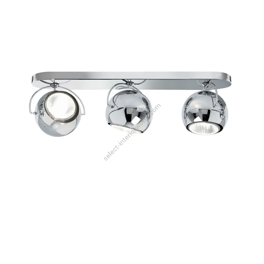 Die kugelförmigen Diffusoren lassen sich in jede beliebige Position drehen und sind in verschiedenen Größen und Materialien erhältlich: transparentes oder lackiertes Kristallglas, poliertes Chrom oder glänzendes weißes geblasenes Glas. Alle Metallstrukturen sind aus poliertem Chrom.