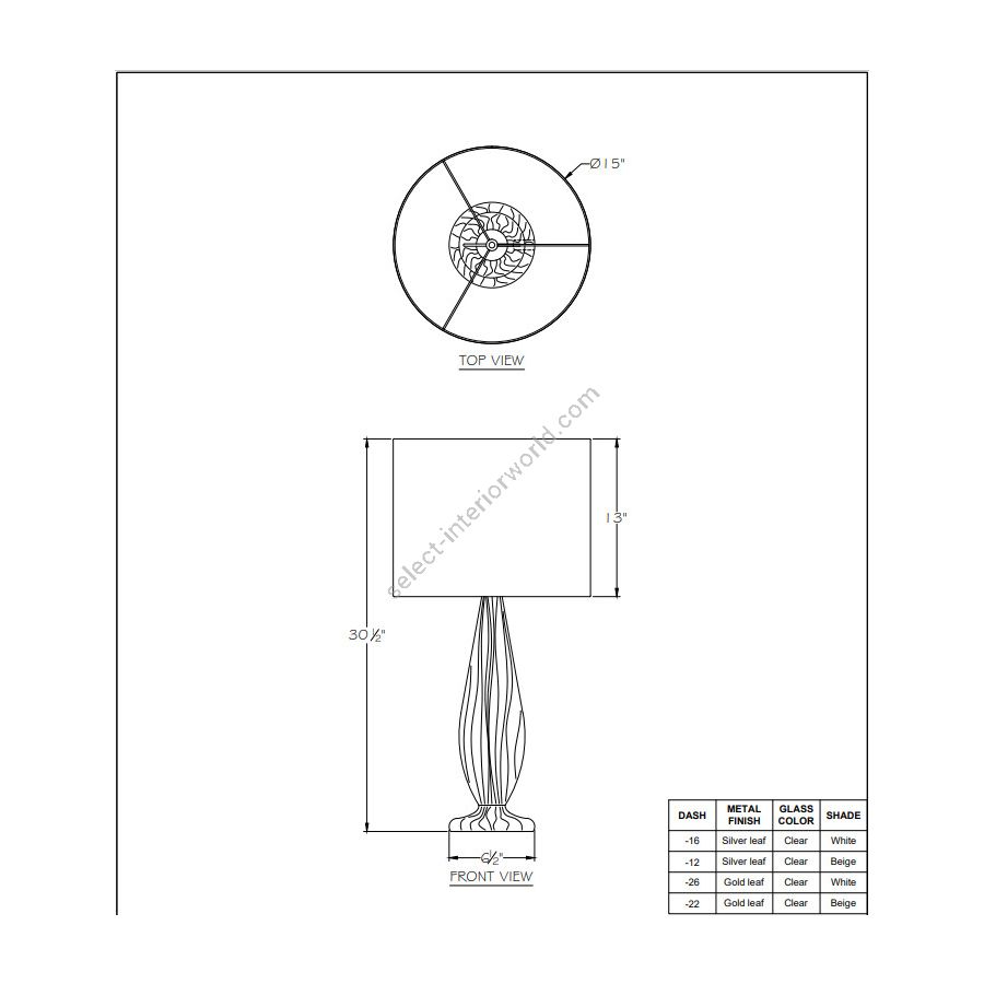 Las Olas 30,5″ Tischlampe ist in 4 Modellen erhältlich (Ausführung/Modellnummer):
