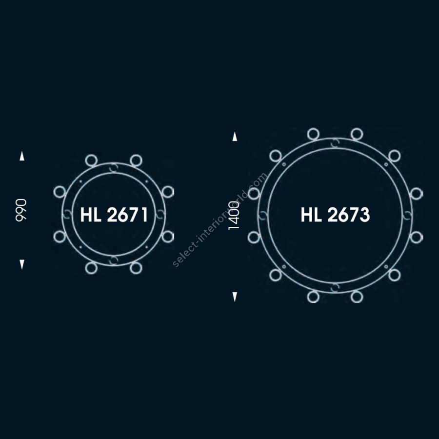 cm.: max 186.3 (H1/36.3 + H2/150) x 140 x 140 (Art. HL2673)