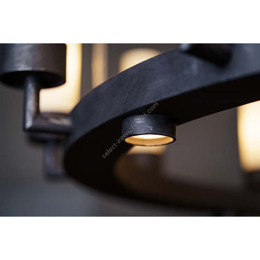 Geschmiedeter Ring-Eisen-Kronleuchter, handgefertigt von Robers. Die Leuchte ist schön für ein klassisches oder modernes Interieur. Abgebildet in einem Taverna-Finish, kann aber auch in Black Silver, Old Black oder Patina bestellt werden. Vielfache auf Sonderbestellung erhältlich. 150 cm Stahlaufhängungssystem, Länge auf Sonderbestellung erhältlich.