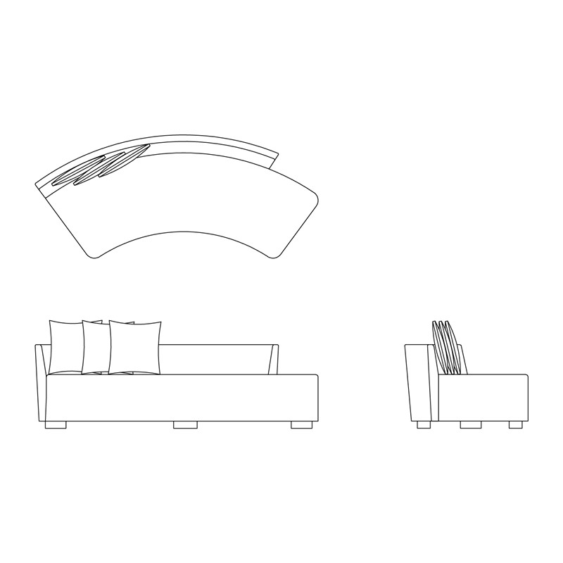 Dieses Sofa kann die Krümmung nach rechts oder nach links haben. Sie wurden geschaffen, um zusammengefügt zu werden und gewundene Körper zu bilden. Es ist von der Silhouette eines Wals für seine großen Formen und ausgeprägten Kurven inspiriert. Inklusive 3 Kissen für mehr Komfort.
