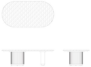 Die ovale Platte dieses Tisches fällt auf, da sie eine neue Form innerhalb des Portfolios der Marke darstellt.