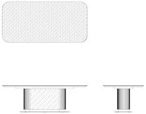 Die Platte kann aus Stein oder Holz sein. Für Steinplatten wird eine gerillte Kante verwendet, während für Holz das Furnier in Längsrichtung verwendet wird, damit die Maserung der französischen Eiche geschätzt werden kann.