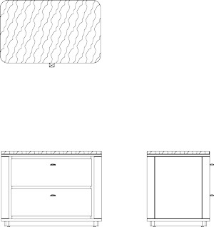 Die Frontschubladen können in Holz oder Hochglanz ausgeführt werden. Seine Steinplatte verleiht ihm aufgrund seiner großen Widerstandsfähigkeit einen Hauch von Frische und hoher Funktionalität.