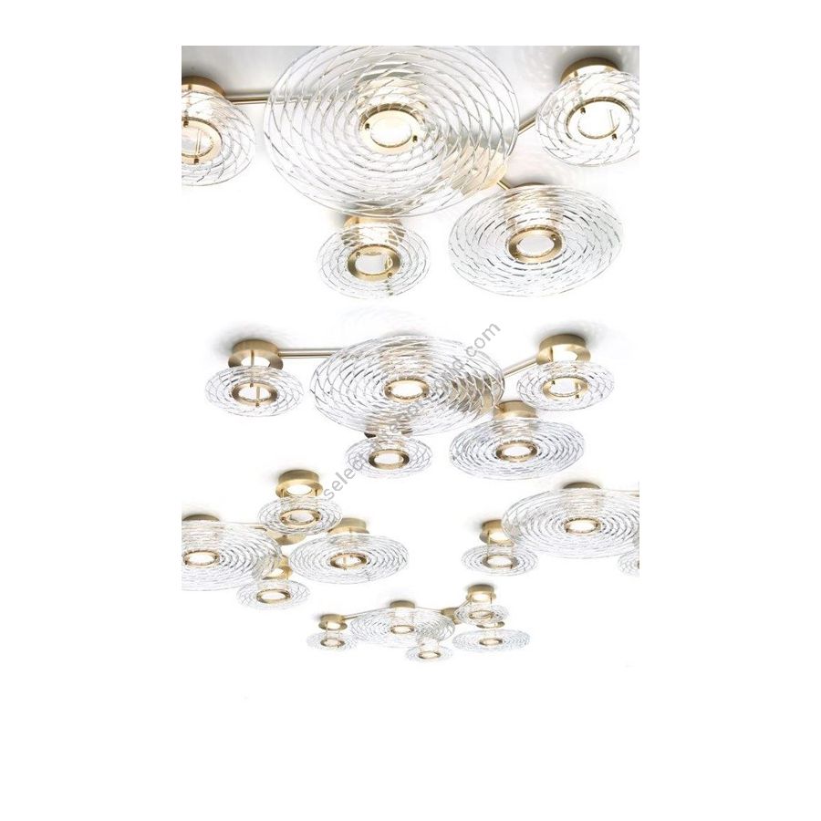 RIPPLE Deckenleuchte/Wandleuchte mit einzelnen Kristallscheiben. Beleuchtungselement, das das Licht mit großer Wirkung in die Umgebung streut und eine warme und einladende Atmosphäre schafft.