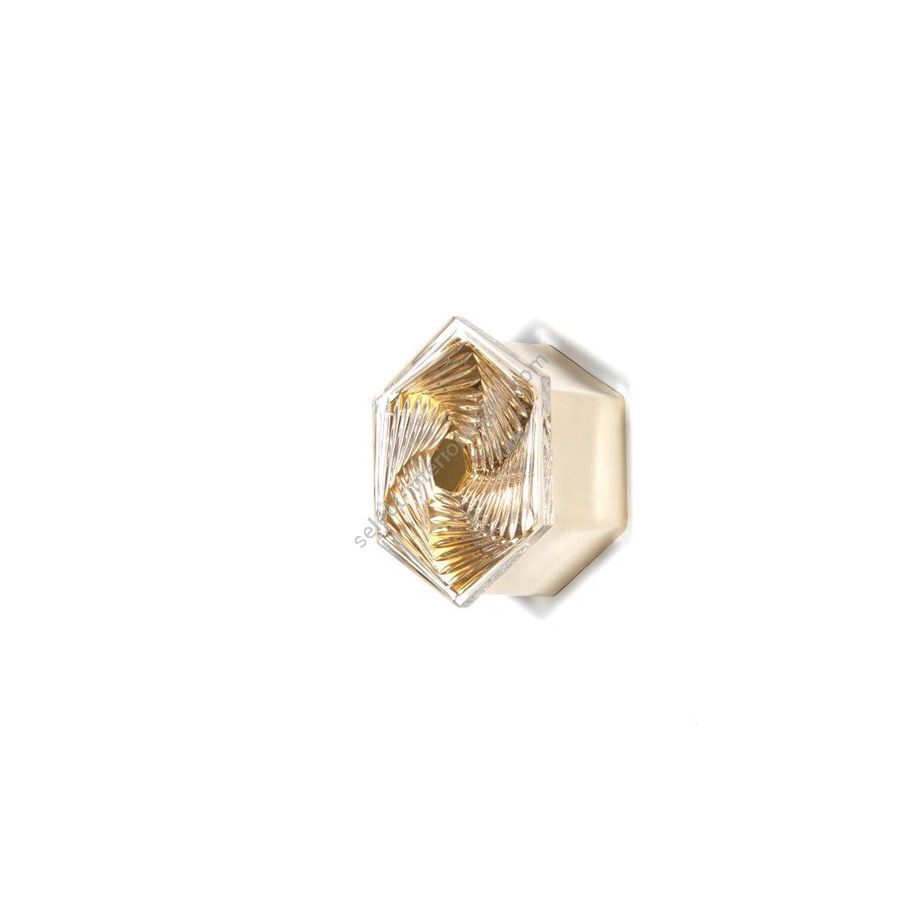 Sechseckige Deckenleuchte/Applikator mit von Hand geschliffenem Kristall. Beleuchtungselement, das das Licht mit großer Wirkung in die Umgebung streut und eine warme und einladende Atmosphäre schafft.