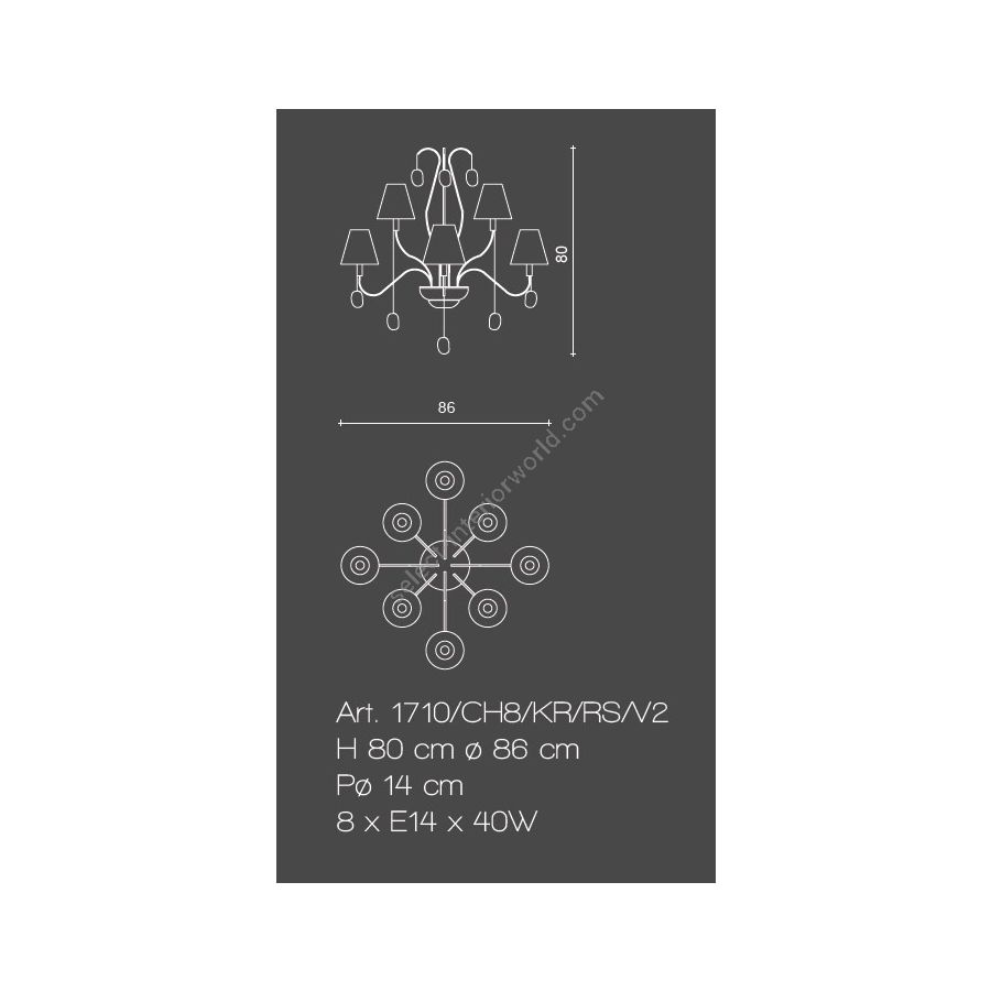 Leuchtmittel: 8 x E14 x 40W| Abmessungen (HxBxT): | cm: 80x86x14 / inches: 31.50"x33.86"x5.51" |