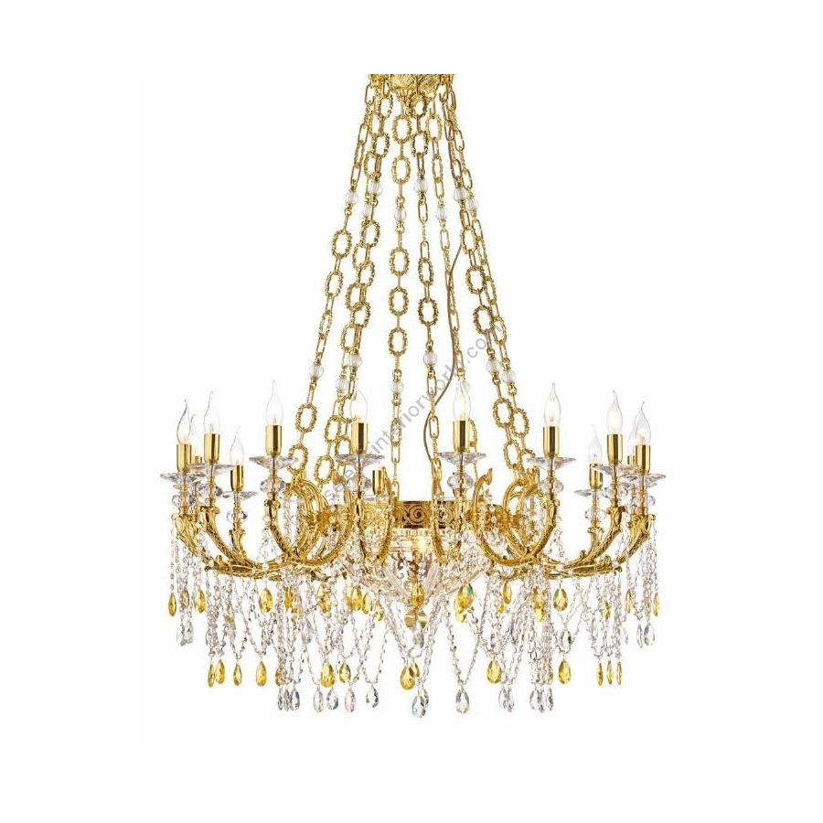 Kronleuchter aus massivem Messing mit Kristalleinsätzen und Anhängern von Asfour®. Beleuchtungselement, das das Licht mit großer Wirkung in die Umgebung streut und eine warme und einladende Atmosphäre schafft.